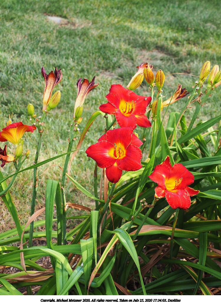 Picture #12: Daylilies 750x1023, 183,097 bytes (179K), (html file) Copyright, Michael Meissner 2020, All rights reserved Olympus E-M5-III camera with Olympus-m43 12-200mm f/3.5-6.3 lens f/5.6, ISO 200, 1/100 sec, 34.0mm, auto mode, vivid color, SHQ, matrix metering, IS Auto, noise reduction auto 35mm equivalent focal length 68.0mm Programs used: crop, raw therapee, rotate left Taken by Michael Meissner on July 25, 2020 17:34:03 Last modified on August 14, 2020 at 00:48 |