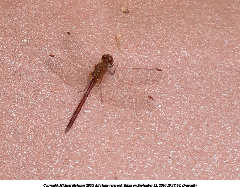 Picture #2: Dragonfly #2 800x623, 123,130 bytes (121K), (html file) Copyright, Michael Meissner 2020, All rights reserved Samsung A20 phone f/1.9, ISO 40, 1/179 sec, 3.6mm, auto mode, spot metering 35mm equivalent focal length 27.0mm Programs used: gimp, rotate Taken by Michael Meissner on September 22, 2020 10:17:18 Last modified on December 07, 2020 at 18:33 |