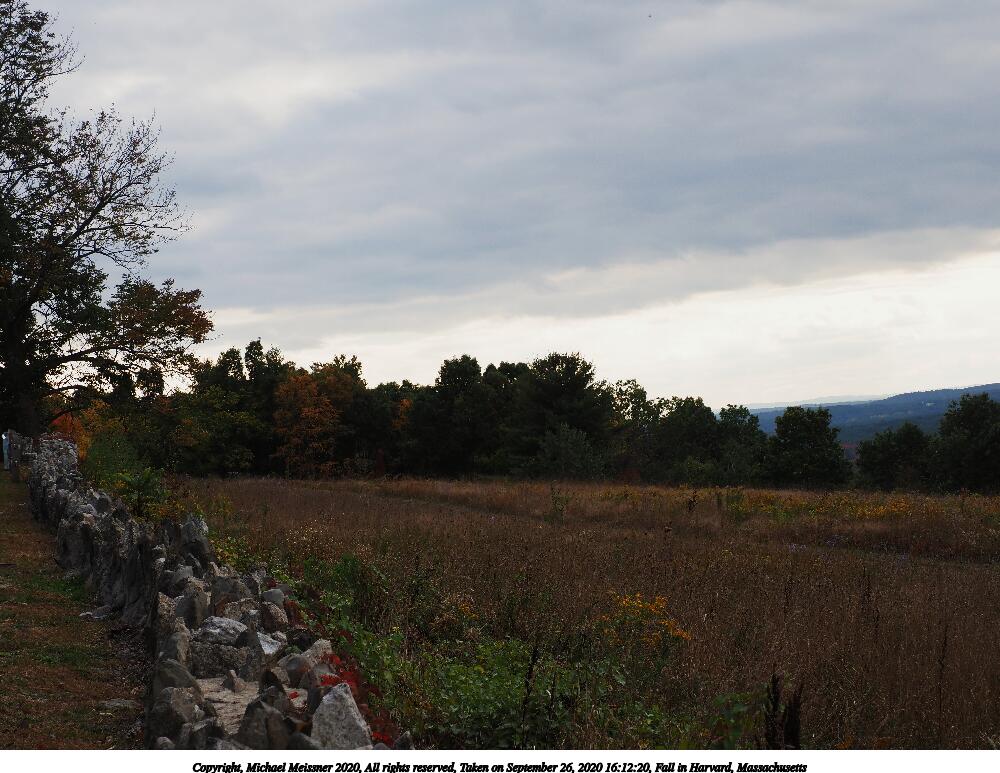 Picture #5: Fall in Harvard, Massachusetts #4 1000x773, 150,074 bytes (147K), (html file) Copyright, Michael Meissner 2020, All rights reserved Olympus E-M5-III camera with Olympus-m43 12-200mm f/3.5-6.3 lens f/9.0, ISO 200, 1/200 sec, 40.0mm, auto mode, vivid color, SHQ, matrix metering, IS Auto 35mm equivalent focal length 80.0mm Programs used: crop, raw therapee Taken by Michael Meissner on September 26, 2020 16:12:20 Last modified on December 07, 2020 at 18:58 |