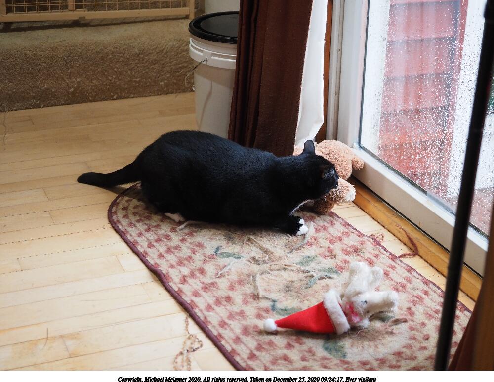 Picture #9: Ever vigilant 750x1023, 121,132 bytes (119K), (html file) Copyright, Michael Meissner 2020, All rights reserved Olympus E-M5-III camera with Olympus-m43 12-40mm f/2.8 lens f/3.2, ISO 5000, 1/60 sec, 29.0mm, auto mode, vivid color, matrix metering, bias 0.3, IS Auto 35mm equivalent focal length 58.0mm Programs used: crop, rotate left Taken by Michael Meissner on December 25, 2020 09:14:10 Last modified on December 29, 2020 at 14:59 |
