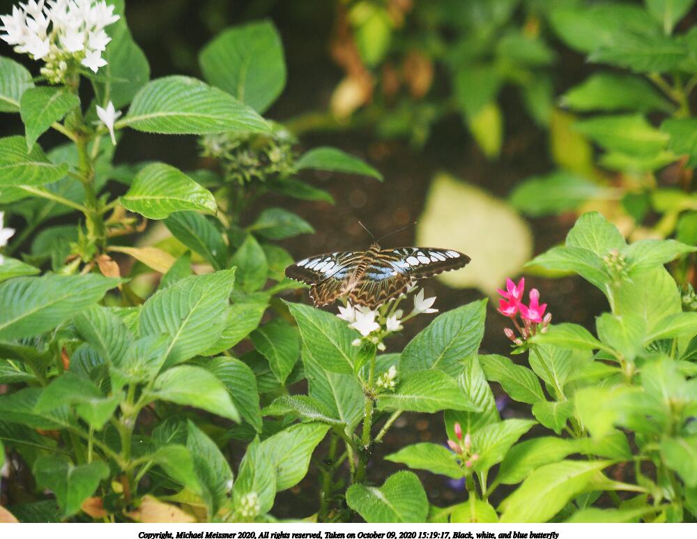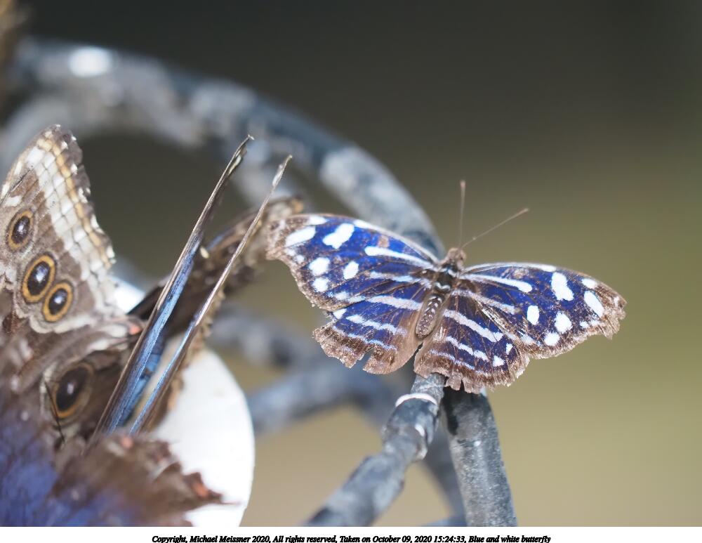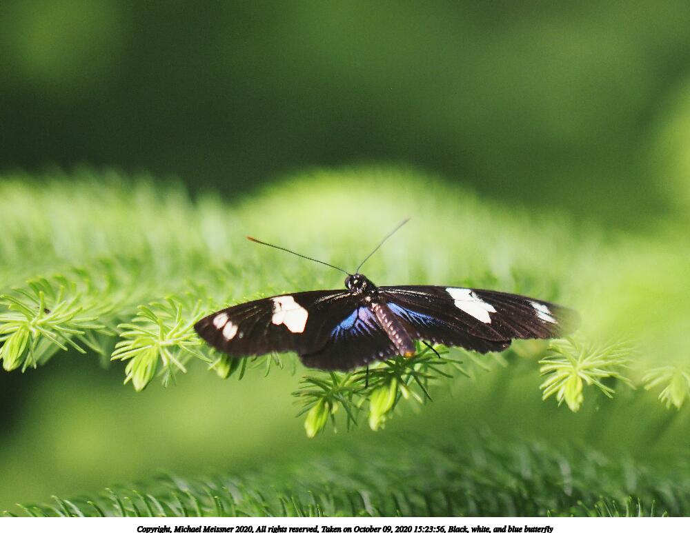 Picture #15: Black, white, and blue butterfly #3 1000x773, 99,875 bytes (98K), (html file) Copyright, Michael Meissner 2020, All rights reserved Olympus E-M5-III camera with Olympus 50-200mm lens f/3.5, ISO 1250, 1/400 sec, 200.0mm, auto mode, vivid color, SHQ, matrix metering, IS Auto 35mm equivalent focal length 401.0mm Programs used: crop, raw therapee Taken by Michael Meissner on October 09, 2020 15:23:56 Last modified on January 01, 2021 at 00:25 |