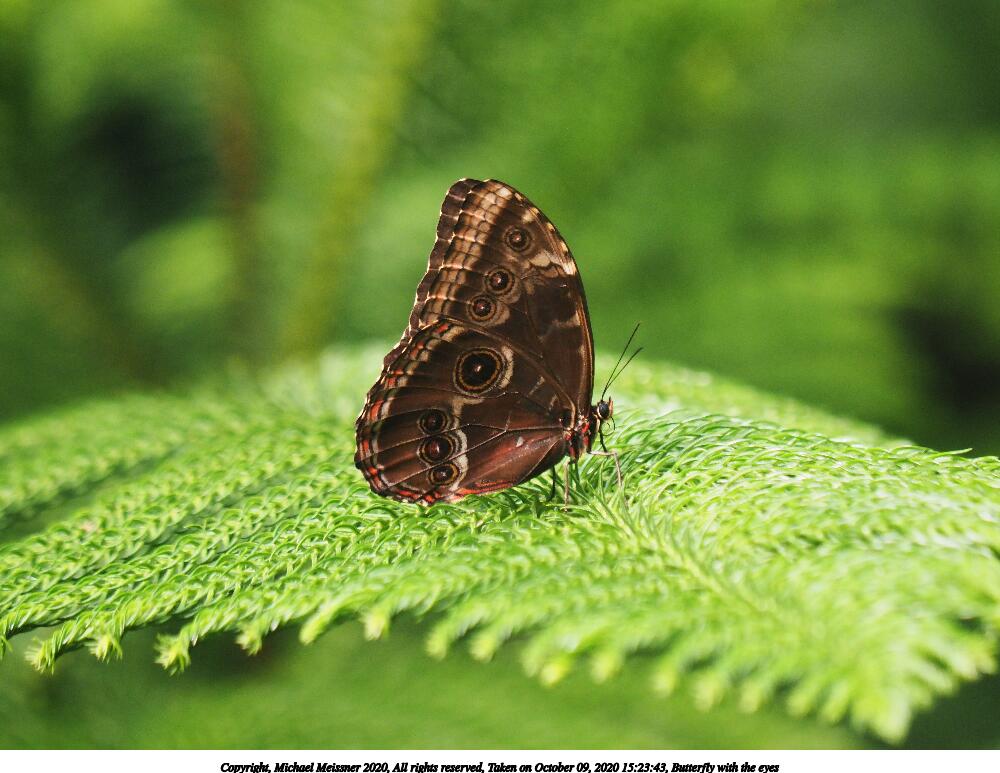Picture #24: Butterfly with the eyes #4 1000x773, 102,589 bytes (101K), (html file) Copyright, Michael Meissner 2020, All rights reserved Olympus E-M5-III camera with Olympus 50-200mm lens f/3.5, ISO 200, flash, 1/60 sec, 200.0mm, auto mode, vivid color, SHQ, matrix metering, IS Auto 35mm equivalent focal length 401.0mm Programs used: crop, raw therapee Taken by Michael Meissner on October 09, 2020 15:37:31 Last modified on January 01, 2021 at 00:28 |
