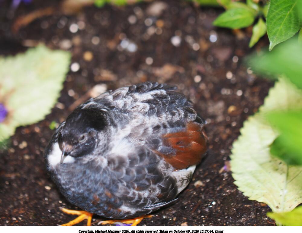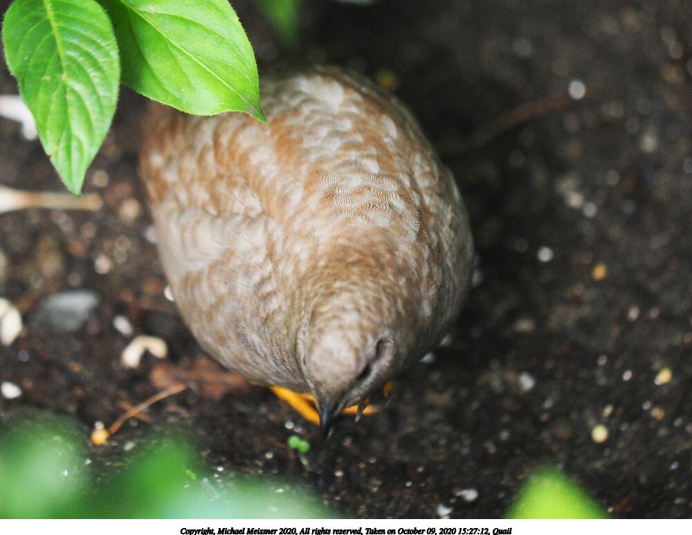 Picture #30: Quail #3 1000x773, 121,117 bytes (119K), (html file) Copyright, Michael Meissner 2020, All rights reserved Olympus E-M5-III camera with Olympus 50-200mm lens f/3.1, ISO 200, flash, 1/60 sec, 137.0mm, auto mode, vivid color, SHQ, matrix metering, IS Auto 35mm equivalent focal length 274.0mm Programs used: crop, raw therapee Taken by Michael Meissner on October 09, 2020 15:41:58 Last modified on January 01, 2021 at 00:30 |