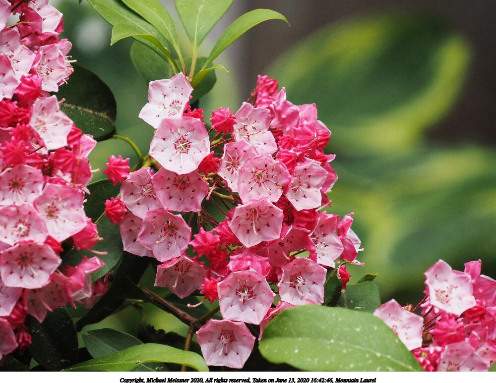 Picture #7: Mountain Laurel #3 1000x773, 221,485 bytes (217K), (html file) Copyright, Michael Meissner 2020, All rights reserved Olympus E-M5-III camera with Olympus-m43 12-200mm f/3.5-6.3 lens f/5.6, ISO 320, 1/100 sec, 42.0mm, auto mode, natural color, matrix metering, IS Auto, noise reduction auto 35mm equivalent focal length 84.0mm Programs used: crop, raw therapee Taken by Michael Meissner on June 13, 2020 16:42:40 Last modified on October 17, 2020 at 23:10 |