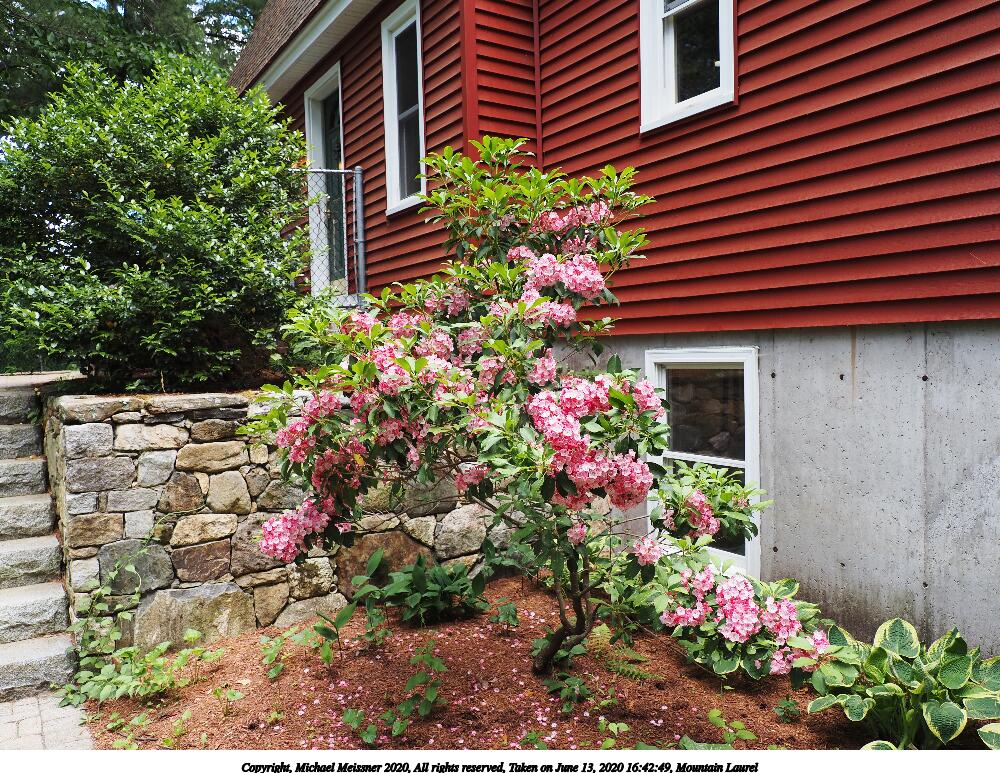 Picture #2: Mountain Laurel 1000x773, 294,192 bytes (288K), (html file) Copyright, Michael Meissner 2020, All rights reserved Olympus E-M5-III camera with Olympus-m43 12-200mm f/3.5-6.3 lens f/4.5, ISO 200, 1/60 sec, 23.0mm, auto mode, natural color, matrix metering, IS Auto, noise reduction auto 35mm equivalent focal length 46.0mm Programs used: crop, raw therapee Taken by Michael Meissner on June 13, 2020 16:42:11 Last modified on October 17, 2020 at 23:06 |