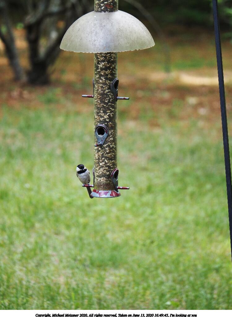 Picture #4: I'm looking at you 750x1023, 108,070 bytes (106K), (html file) Copyright, Michael Meissner 2020, All rights reserved Olympus E-M5-III camera with Panasonic 100-300mm-II lens f/4.5, ISO 1000, 1/320 sec, 150.0mm, auto mode, natural color, matrix metering, IS1 (All Direction Shake IS), noise reduction auto 35mm equivalent focal length 301.0mm Programs used: crop, raw therapee, rotate left Taken by Michael Meissner on June 13, 2020 16:49:45 Last modified on October 17, 2020 at 23:22 |