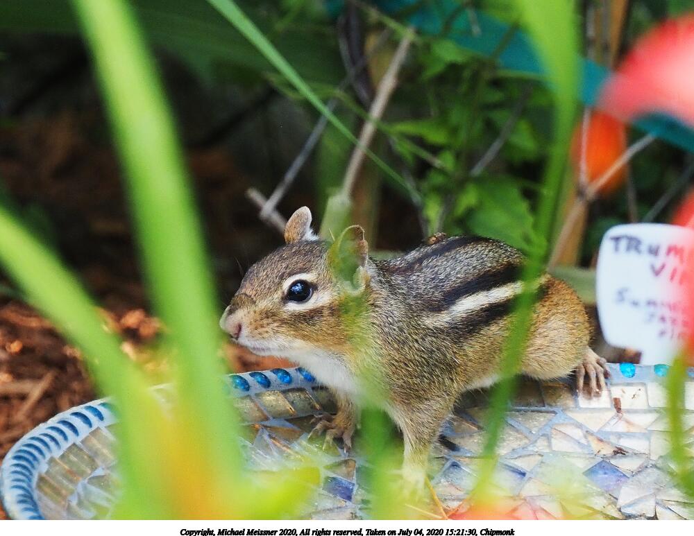 Picture #33: Chipmonk 1000x773, 129,285 bytes (127K), (html file) Copyright, Michael Meissner 2020, All rights reserved Olympus E-M5-III camera with Olympus-m43 12-200mm f/3.5-6.3 lens f/6.3, ISO 1600, 1/400 sec, 200.0mm, auto mode, vivid color, SHQ, matrix metering, digital zoom x2, IS Auto, noise reduction auto 35mm equivalent focal length 801.0mm, digital zoom x2 Programs used: crop, raw therapee Taken by Michael Meissner on July 04, 2020 15:21:27 Last modified on January 02, 2021 at 00:31 |