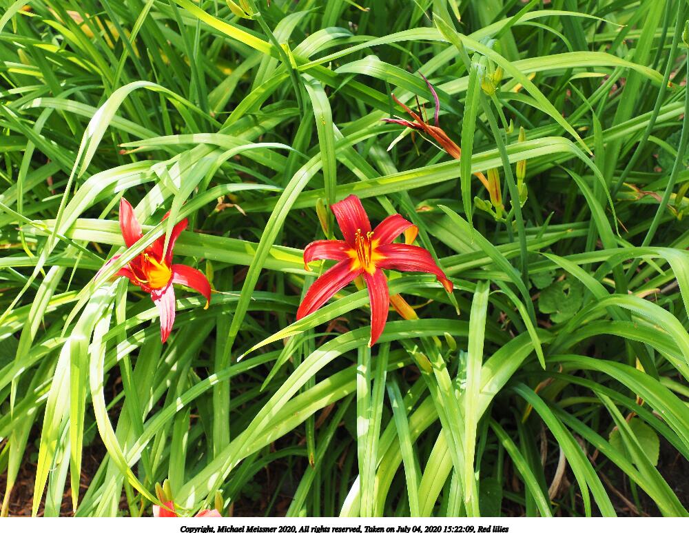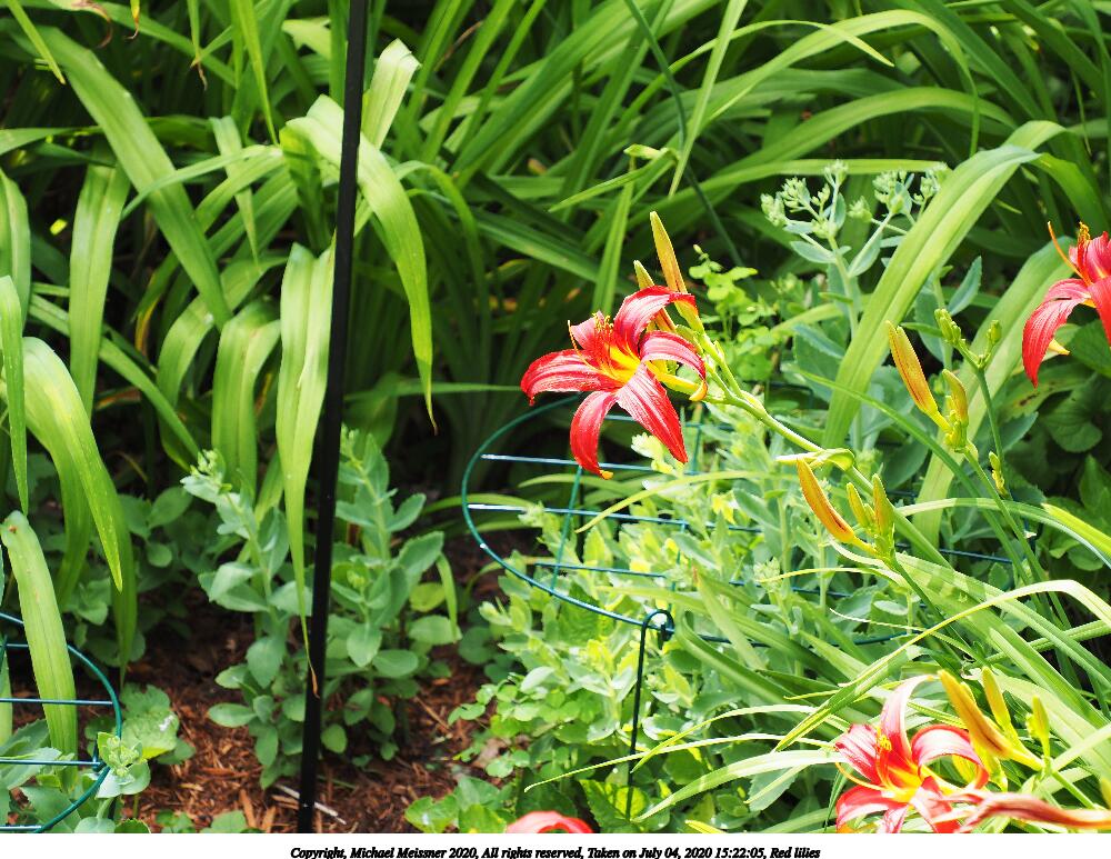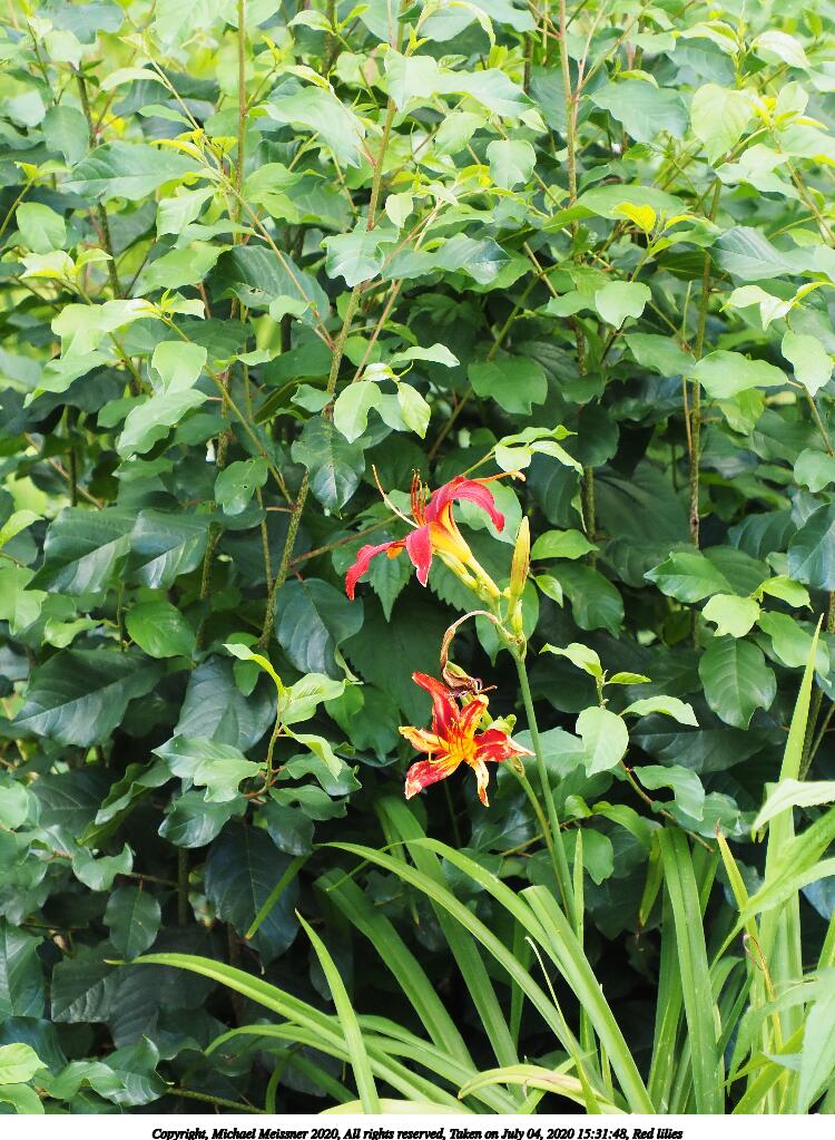 Picture #48: Red lilies 1000x773, 232,093 bytes (227K), (html file) Copyright, Michael Meissner 2020, All rights reserved Olympus E-M5-III camera with Olympus-m43 12-200mm f/3.5-6.3 lens f/7.1, ISO 200, 1/125 sec, 37.0mm, auto mode, vivid color, SHQ, matrix metering, IS Auto, noise reduction auto 35mm equivalent focal length 74.0mm Taken by Michael Meissner on July 04, 2020 14:39:28 Last modified on January 02, 2021 at 00:21 |
