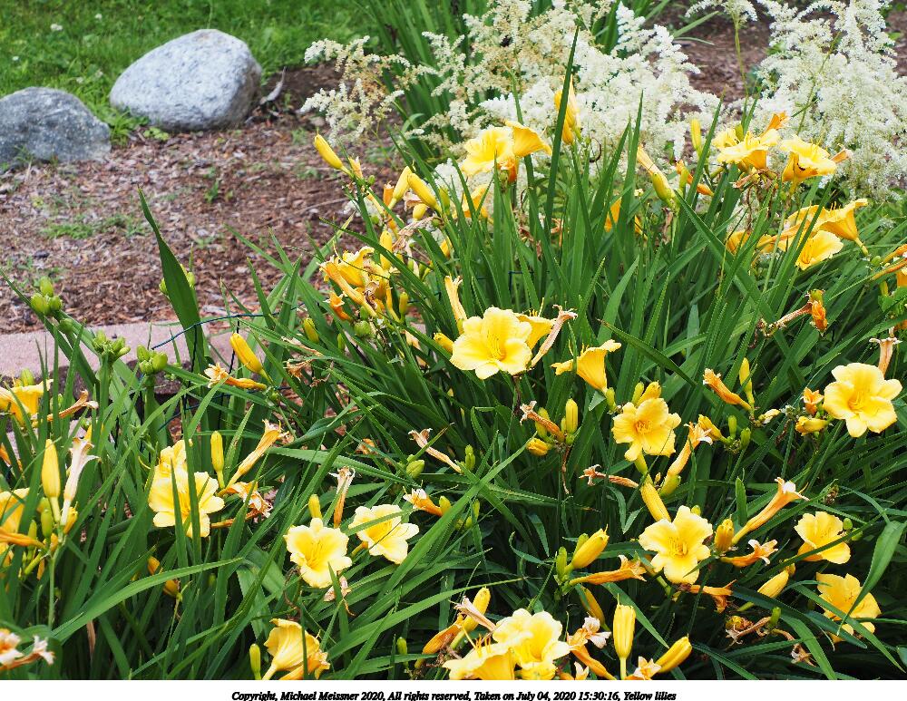 Picture #5: Yellow lilies #3 1000x773, 260,209 bytes (255K), (html file) Copyright, Michael Meissner 2020, All rights reserved Olympus E-M5-III camera with Olympus-m43 12-200mm f/3.5-6.3 lens f/6.3, ISO 200, 1/125 sec, 37.0mm, auto mode, vivid color, SHQ, matrix metering, IS Auto, noise reduction auto 35mm equivalent focal length 74.0mm Programs used: crop, raw therapee Taken by Michael Meissner on July 04, 2020 15:30:16 Last modified on January 02, 2021 at 00:52 |