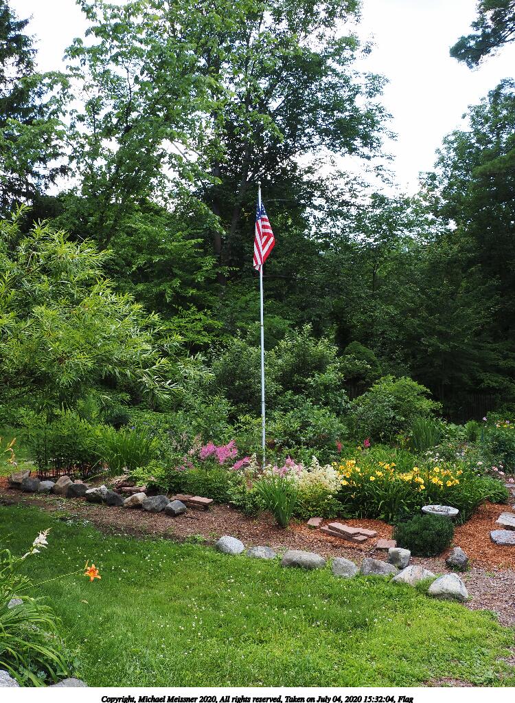 Picture #1: Flag 750x1023, 322,797 bytes (316K), (html file) Copyright, Michael Meissner 2020, All rights reserved Olympus E-M5-III camera with Olympus-m43 12-200mm f/3.5-6.3 lens f/6.3, ISO 200, 1/160 sec, 15.0mm, auto mode, vivid color, SHQ, matrix metering, IS Auto, noise reduction auto 35mm equivalent focal length 30.0mm Programs used: crop, raw therapee, rotate left Taken by Michael Meissner on July 04, 2020 15:32:04 Last modified on January 02, 2021 at 00:55 |