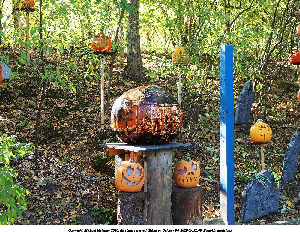 Picture #5: Pumpkin musicians 1000x773, 350,107 bytes (342K), (html file) Copyright, Michael Meissner 2020, All rights reserved Olympus E-M5-III camera with Olympus-m43 12-100mm f/4.0 lens f/4.0, ISO 400, 1/60 sec, 28.0mm, auto mode, vivid color, SHQ, matrix metering, IS Auto 35mm equivalent focal length 56.0mm Taken by Michael Meissner on October 04, 2020 09:32:40 Last modified on January 02, 2021 at 02:13 |