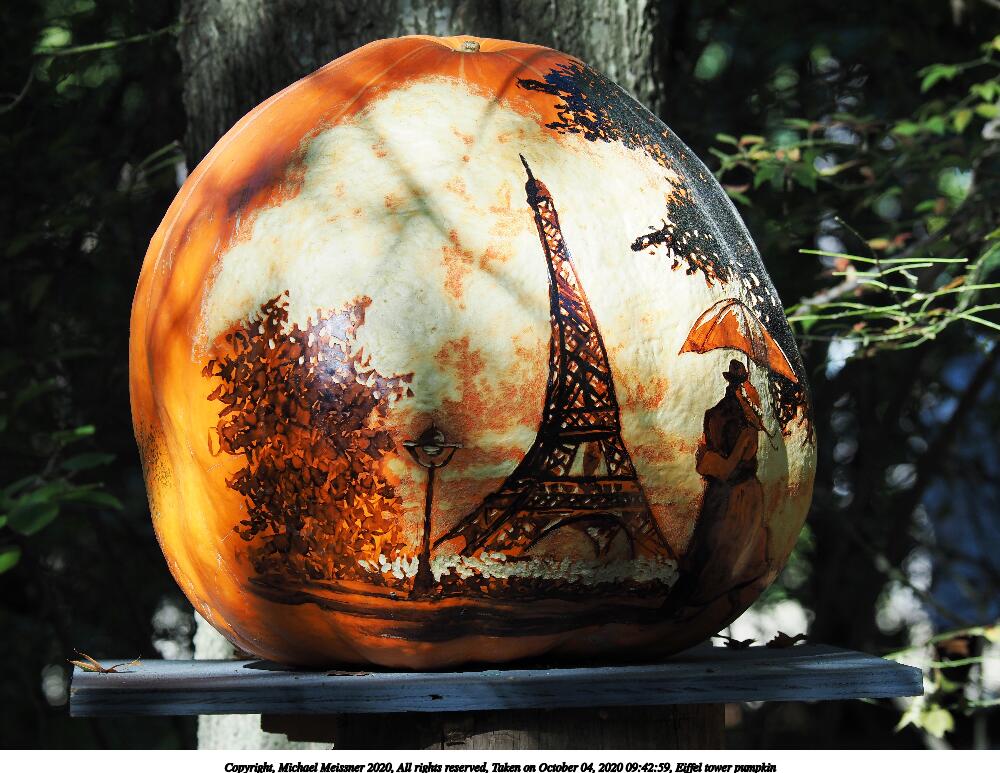 Picture #26: Eiffel tower pumpkin 1000x773, 158,426 bytes (155K), (html file) Copyright, Michael Meissner 2020, All rights reserved Olympus E-M5-III camera with Olympus-m43 12-100mm f/4.0 lens f/4.0, ISO 200, 1/200 sec, 100.0mm, auto mode, vivid color, SHQ, matrix metering, IS Auto 35mm equivalent focal length 200.0mm Programs used: crop, raw therapee Taken by Michael Meissner on October 04, 2020 09:42:59 Last modified on January 02, 2021 at 02:23 |