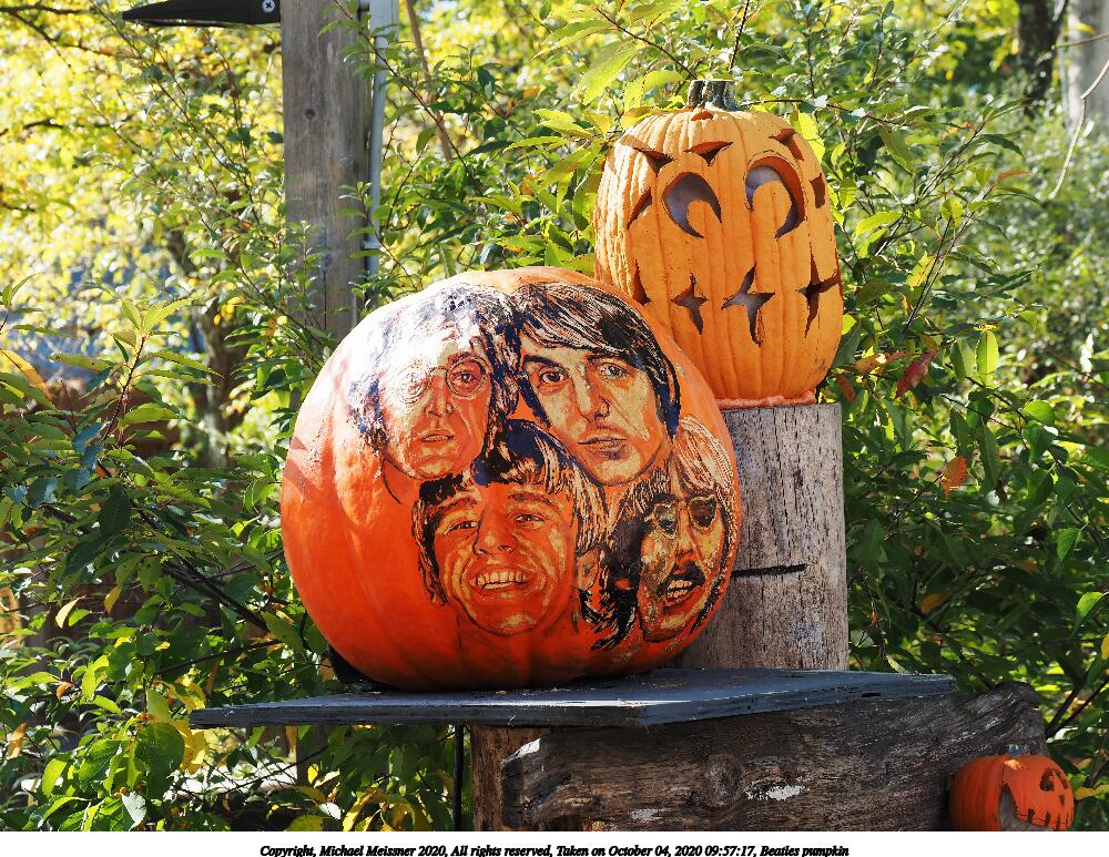 Picture #43: Beatles pumpkin 1000x773, 263,369 bytes (258K), (html file) Copyright, Michael Meissner 2020, All rights reserved Olympus E-M5-III camera with Olympus-m43 12-100mm f/4.0 lens f/5.0, ISO 200, 1/160 sec, 47.0mm, auto mode, vivid color, SHQ, matrix metering, IS Auto 35mm equivalent focal length 94.0mm Programs used: crop, raw therapee Taken by Michael Meissner on October 04, 2020 09:57:17 Last modified on January 02, 2021 at 02:31 |