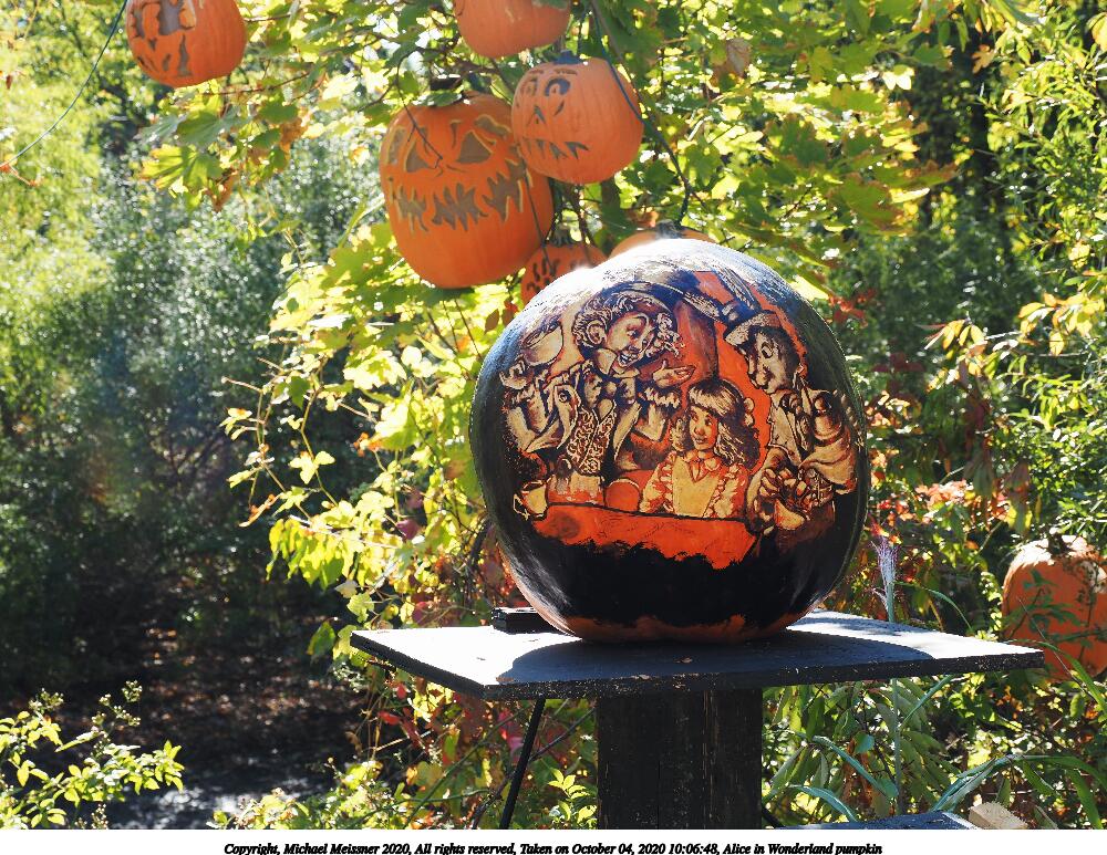 Picture #52: Alice in Wonderland pumpkin 1000x773, 244,681 bytes (239K), (html file) Copyright, Michael Meissner 2020, All rights reserved Olympus E-M5-III camera with Olympus-m43 12-100mm f/4.0 lens f/6.3, ISO 200, 1/160 sec, 38.0mm, auto mode, vivid color, SHQ, matrix metering, IS Auto 35mm equivalent focal length 76.0mm Programs used: crop, raw therapee Taken by Michael Meissner on October 04, 2020 10:06:48 Last modified on January 02, 2021 at 02:36 |
