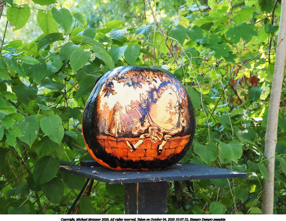 Picture #53: Humpty Dumpty pumpkin 1000x773, 203,842 bytes (200K), (html file) Copyright, Michael Meissner 2020, All rights reserved Olympus E-M5-III camera with Olympus-m43 12-100mm f/4.0 lens f/4.0, ISO 800, 1/125 sec, 54.0mm, auto mode, vivid color, SHQ, matrix metering, IS Auto 35mm equivalent focal length 108.0mm Programs used: crop, raw therapee Taken by Michael Meissner on October 04, 2020 10:07:52 Last modified on January 02, 2021 at 02:37 |