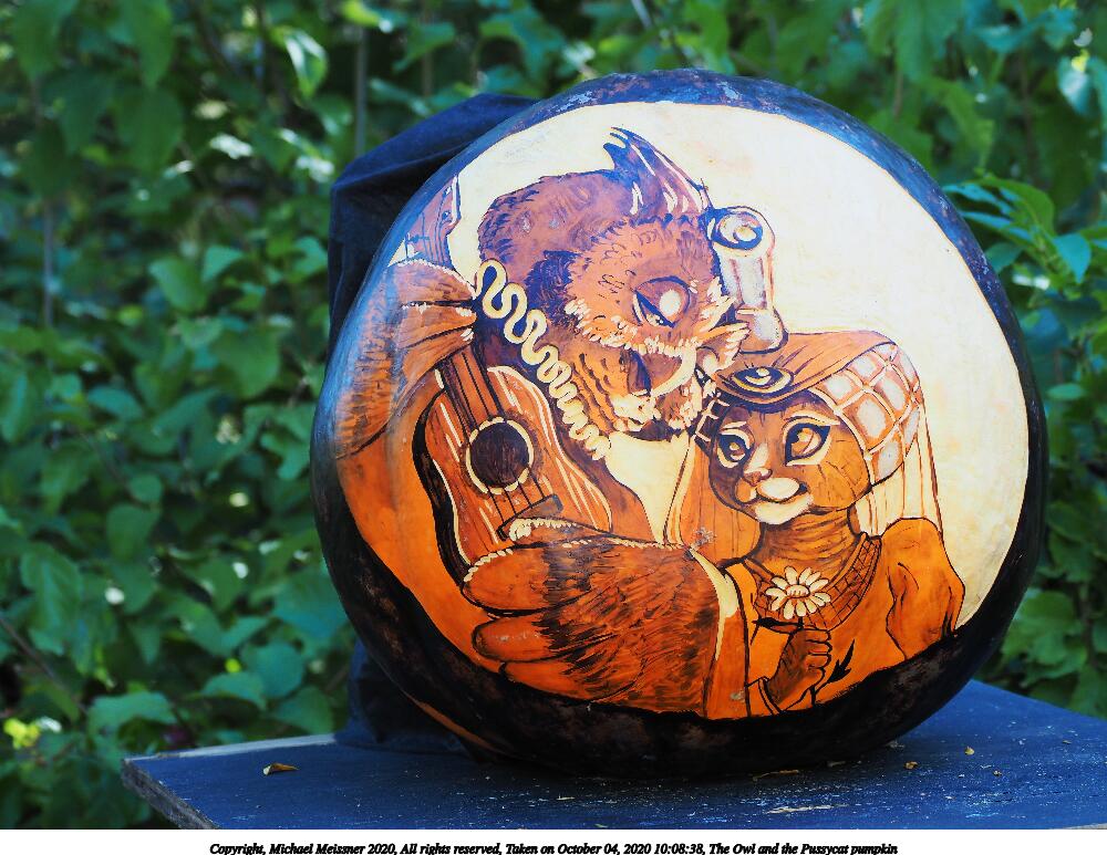 Picture #57: The Owl and the Pussycat pumpkin 1000x773, 163,093 bytes (160K), (html file) Copyright, Michael Meissner 2020, All rights reserved Olympus E-M5-III camera with Olympus-m43 12-100mm f/4.0 lens f/4.0, ISO 200, 1/100 sec, 54.0mm, auto mode, vivid color, SHQ, matrix metering, IS Auto 35mm equivalent focal length 108.0mm Programs used: crop, raw therapee Taken by Michael Meissner on October 04, 2020 10:08:38 Last modified on January 02, 2021 at 02:38 |