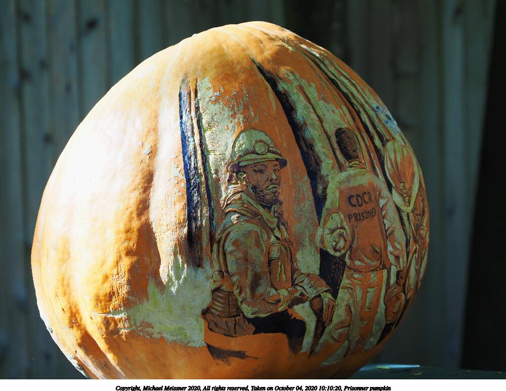 Picture #61: Prisonner pumpkin 1000x773, 137,090 bytes (134K), (html file) Copyright, Michael Meissner 2020, All rights reserved Olympus E-M5-III camera with Olympus-m43 12-100mm f/4.0 lens f/4.5, ISO 200, 1/200 sec, 80.0mm, auto mode, vivid color, SHQ, matrix metering, IS Auto 35mm equivalent focal length 160.0mm Taken by Michael Meissner on October 04, 2020 10:10:20 Last modified on January 02, 2021 at 02:40 |