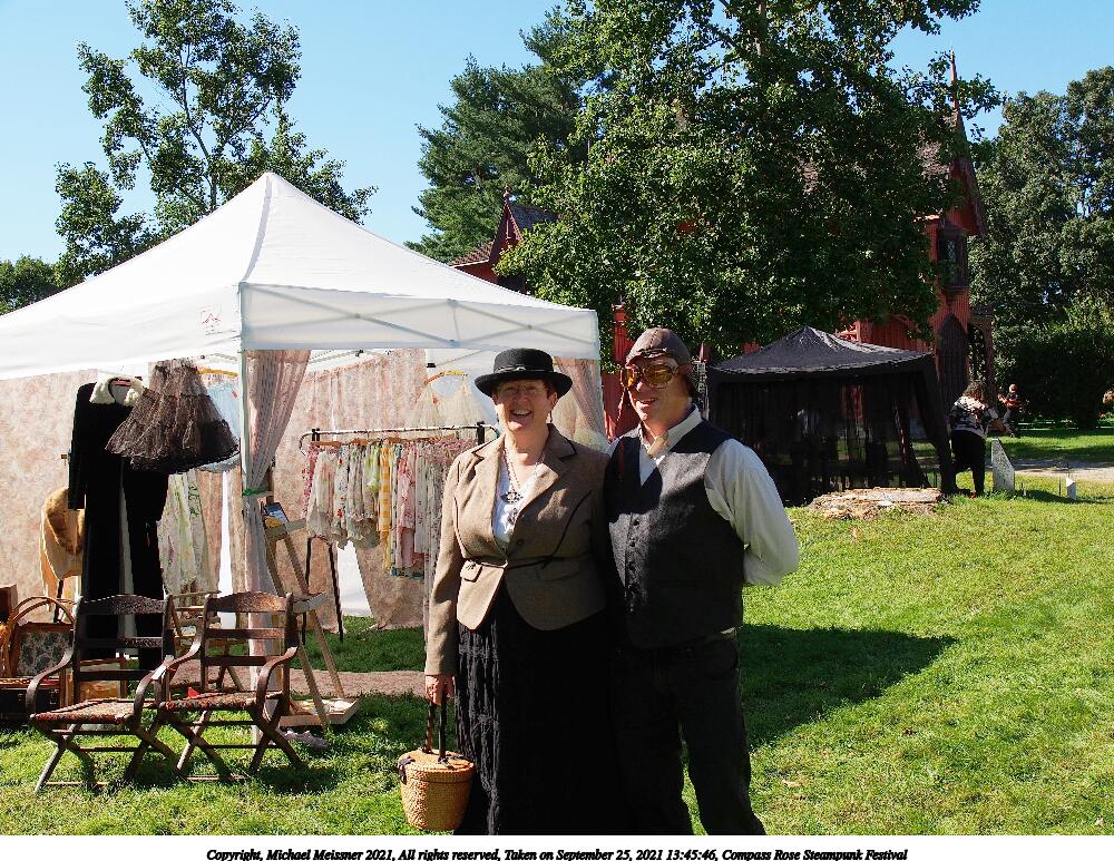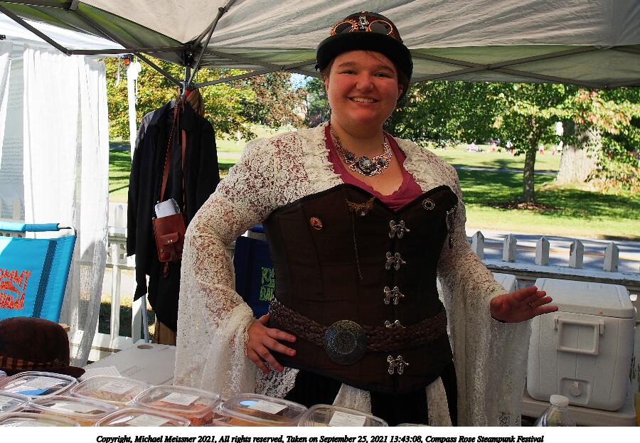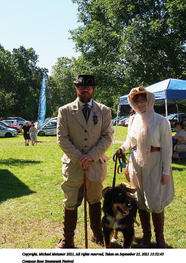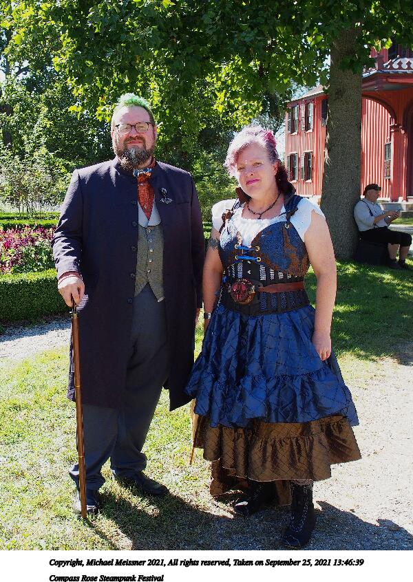 Picture #4: Compass Rose Steampunk Festival #5 Small: 900x623, 151,936 bytes (149K), (html file) Large: 3600x2400, 7,165,806 bytes (6.8M), (html file) Copyright, Michael Meissner 2021, All rights reserved Olympus E-M5-I camera with Sigma 16mm f/1.4 lens f/4.0, ISO 200, 1/500 sec, 16.0mm, auto mode, vivid color, SHQ, matrix metering, IS1 (All Direction Shake IS), noise reduction auto, noise filter low 35mm equivalent focal length 32.0mm Programs used: crop, gimp, raw therapee Taken by Michael Meissner on September 25, 2021 13:43:08 Last modified on December 12, 2021 at 15:27 |
