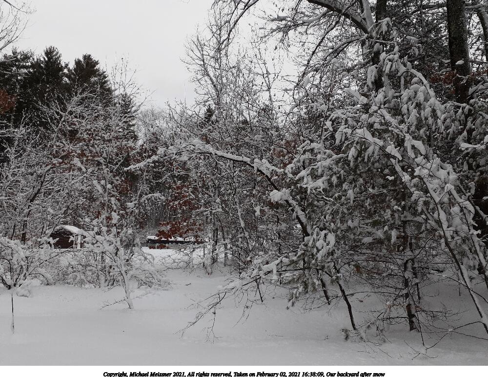 Picture #21: Our backyard after snow 1000x773, 255,674 bytes (250K), (html file) Copyright, Michael Meissner 2021, All rights reserved Samsung A20 phone f/1.9, ISO 64, 1/60 sec, 3.6mm, auto mode, spot metering, digital zoom x1.01 35mm equivalent focal length 27.0mm, digital zoom x1.01 Taken by Michael Meissner on February 02, 2021 16:38:09 Last modified on February 02, 2021 at 19:27 |