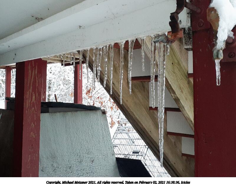 Picture #19: Icicle 800x823, 59,438 bytes (59K), (html file) Copyright, Michael Meissner 2021, All rights reserved Samsung A20 phone f/1.9, ISO 250, 1/30 sec, 3.6mm, auto mode, spot metering 35mm equivalent focal length 27.0mm Programs used: gimp, raw therapee, rotate right Taken by Michael Meissner on February 02, 2021 16:39:11 Last modified on February 02, 2021 at 19:32 |