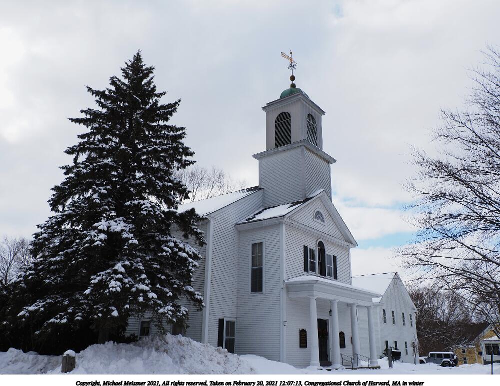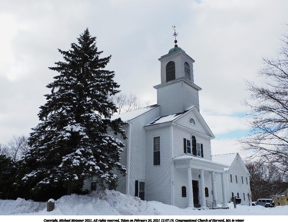 Picture #14: Congregational Church of Harvard, MA in winter 1000x773, 176,164 bytes (173K), (html file) Copyright, Michael Meissner 2021, All rights reserved Olympus E-M5-III camera with Olympus-m43 12-200mm f/3.5-6.3 lens f/5.6, ISO 200, 1/1000 sec, 15.0mm, aperture priority, vivid color, matrix metering, IS Auto 35mm equivalent focal length 30.0mm Programs used: crop, raw therapee Taken by Michael Meissner on February 20, 2021 12:07:13 Last modified on February 20, 2021 at 19:17 |