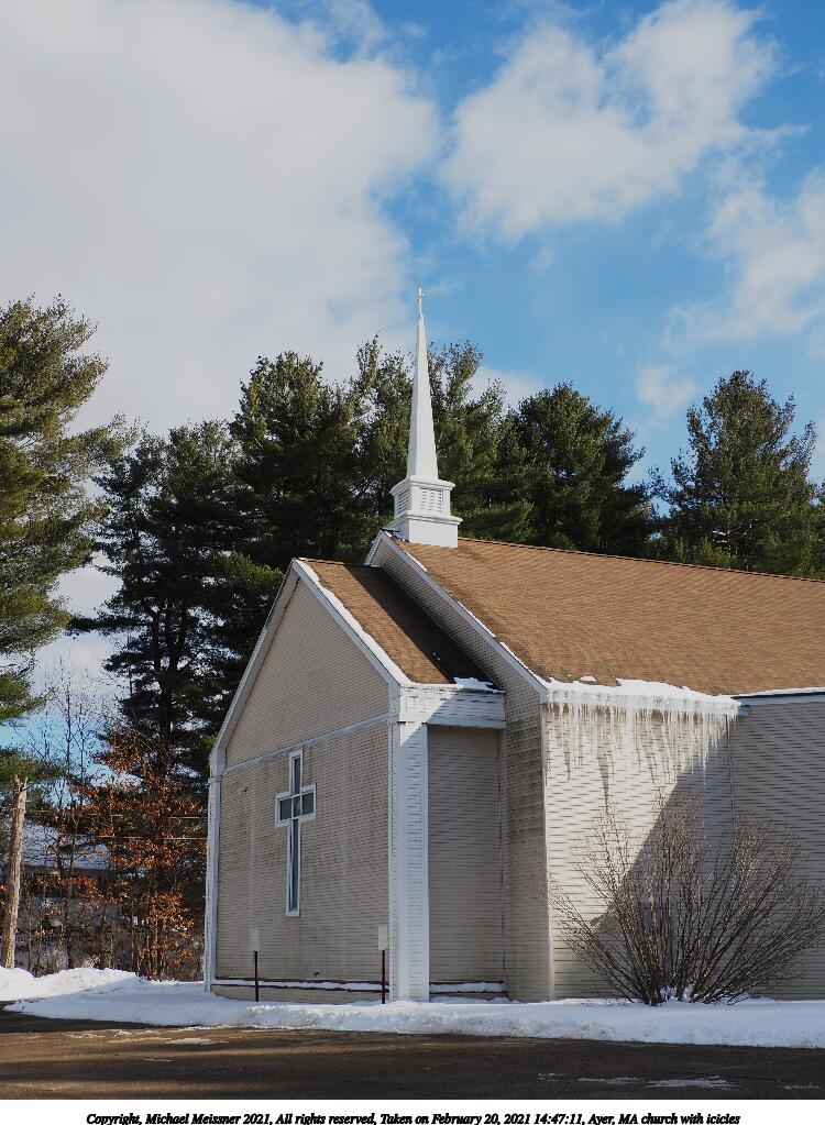 Picture #6: Ayer, MA church with icicles 750x1023, 175,142 bytes (172K), (html file) Copyright, Michael Meissner 2021, All rights reserved Olympus E-M5-III camera with Olympus-m43 12-200mm f/3.5-6.3 lens f/9.0, ISO 200, 1/250 sec, 23.0mm, auto mode, vivid color, matrix metering, IS Auto 35mm equivalent focal length 46.0mm Programs used: crop, raw therapee, rotate left Taken by Michael Meissner on February 20, 2021 14:47:11 Last modified on February 20, 2021 at 19:25 |