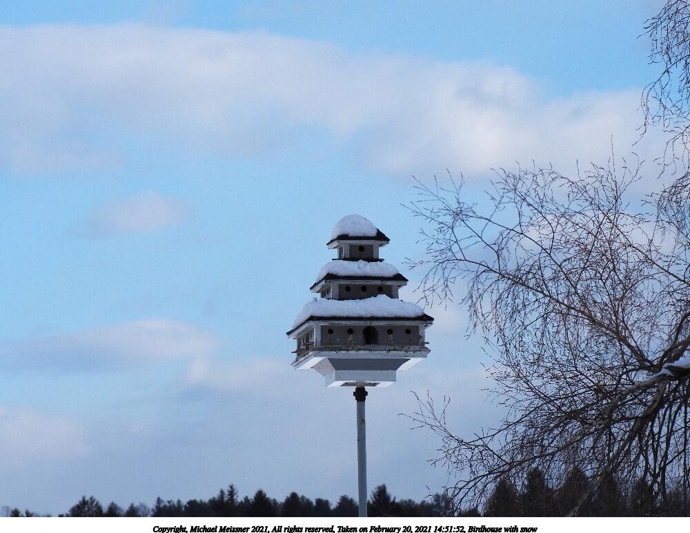 Picture #5: Birdhouse with snow 1000x773, 138,903 bytes (136K), (html file) Copyright, Michael Meissner 2021, All rights reserved Olympus E-M5-III camera with Olympus-m43 12-200mm f/3.5-6.3 lens f/10.0, ISO 200, 1/640 sec, 112.0mm, auto mode, vivid color, matrix metering, IS Auto 35mm equivalent focal length 224.0mm Programs used: crop, gimp, raw therapee Taken by Michael Meissner on February 20, 2021 14:51:52 Last modified on February 20, 2021 at 19:28 |