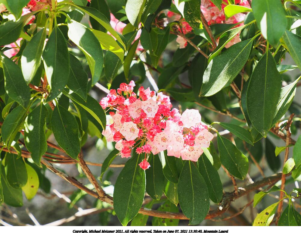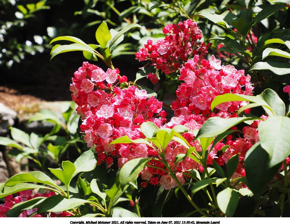 Picture #31: Mountain Laurel #3 1000x773, 306,456 bytes (300K), (html file) Copyright, Michael Meissner 2021, All rights reserved Olympus E-M5-III camera with Olympus-m43 12-200mm f/3.5-6.3 lens f/7.1, ISO 200, 1/125 sec, 28.0mm, auto mode, vivid color, matrix metering, IS Auto 35mm equivalent focal length 56.0mm Taken by Michael Meissner on June 07, 2021 13:30:14 Last modified on June 19, 2021 at 18:33 |