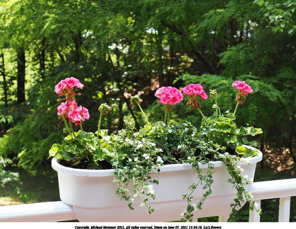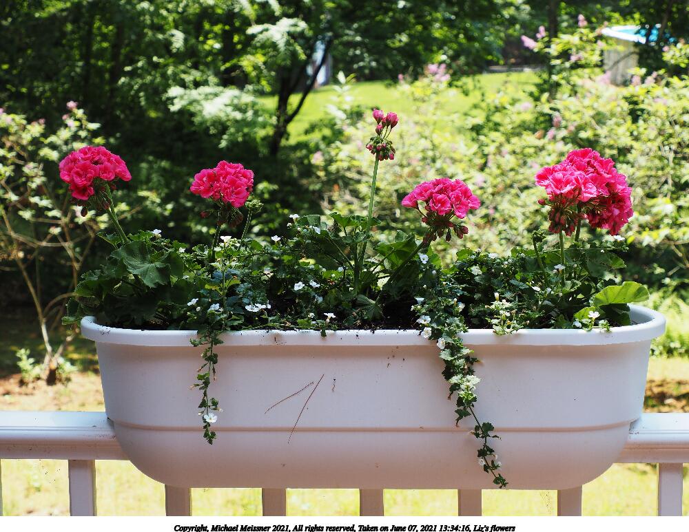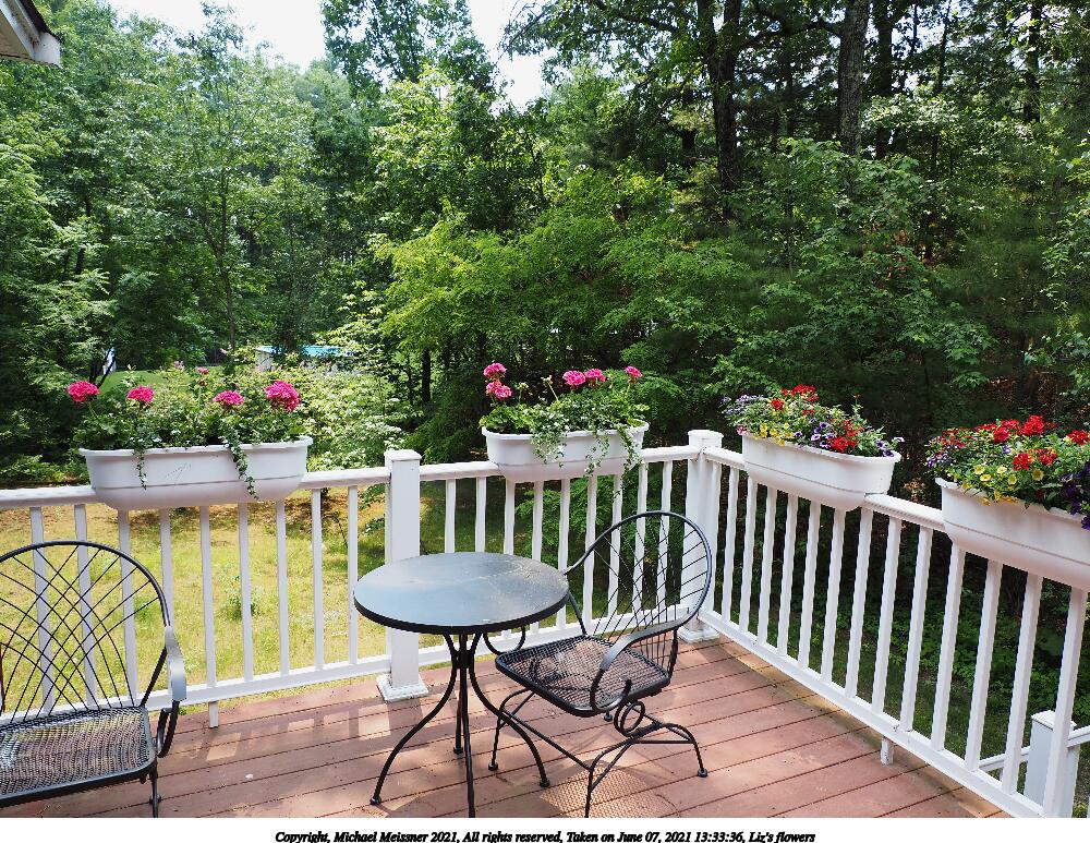 Picture #20: Liz's flowers #6 1000x773, 192,581 bytes (189K), (html file) Copyright, Michael Meissner 2021, All rights reserved Olympus E-M5-III camera with Olympus-m43 12-200mm f/3.5-6.3 lens f/6.3, ISO 200, 1/100 sec, 42.0mm, auto mode, vivid color, matrix metering, IS Auto 35mm equivalent focal length 84.0mm Programs used: crop, raw therapee Taken by Michael Meissner on June 07, 2021 13:34:18 Last modified on June 19, 2021 at 18:41 |