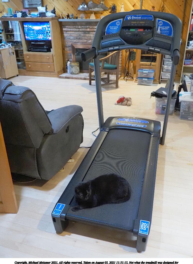 Picture #5: Not what the treadmill was designed for 750x1023, 114,186 bytes (112K), (html file) Copyright, Michael Meissner 2021, All rights reserved Olympus E-M5-III camera with Olympus-m43 12-40mm f/2.8 lens f/2.8, ISO 4000, 1/60 sec, 19.0mm, auto mode, vivid color, matrix metering, bias -0.3, IS Auto 35mm equivalent focal length 38.0mm Programs used: crop, gimp, rotate left Taken by Michael Meissner on August 05, 2021 11:50:53 Last modified on September 12, 2021 at 23:09 |