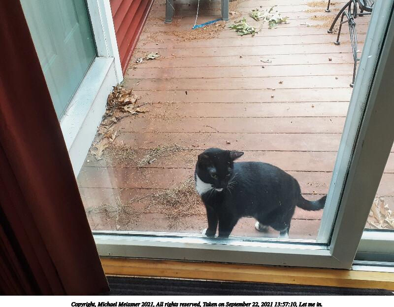 Picture #1: Let me in. 800x623, 91,075 bytes (89K), (html file) Copyright, Michael Meissner 2021, All rights reserved Samsung A20 phone f/1.9, ISO 125, 1/60 sec, 3.6mm, auto mode, spot metering 35mm equivalent focal length 27.0mm Programs used: raw therapee Taken by Michael Meissner on September 22, 2021 13:57:10 Last modified on October 04, 2021 at 11:04 |