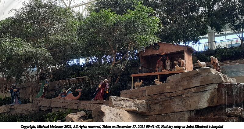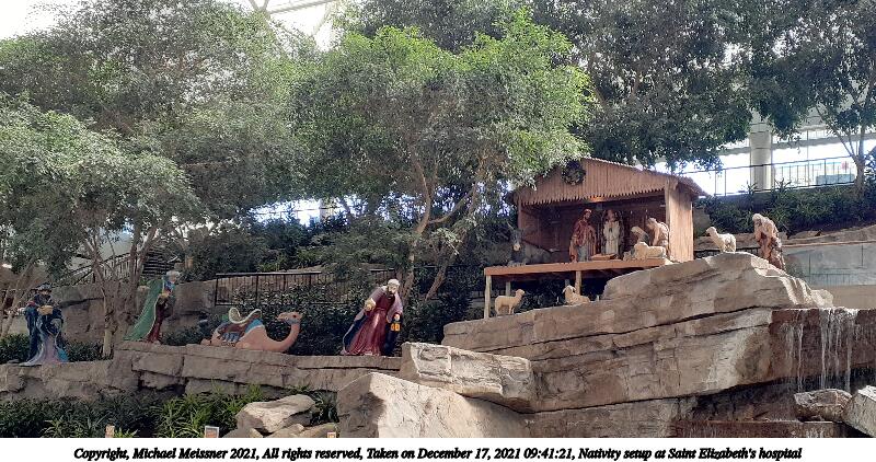 Picture #14: Nativity setup at Saint Elizabeth's hospital #2 800x422, 122,433 bytes (120K), (html file) Copyright, Michael Meissner 2021, All rights reserved Samsung A20 phone f/1.9, ISO 64, 1/60 sec, 3.6mm, auto mode, spot metering 35mm equivalent focal length 27.0mm Programs used: gimp, raw therapee Taken by Michael Meissner on December 17, 2021 09:41:45 Last modified on December 31, 2021 at 22:40 |