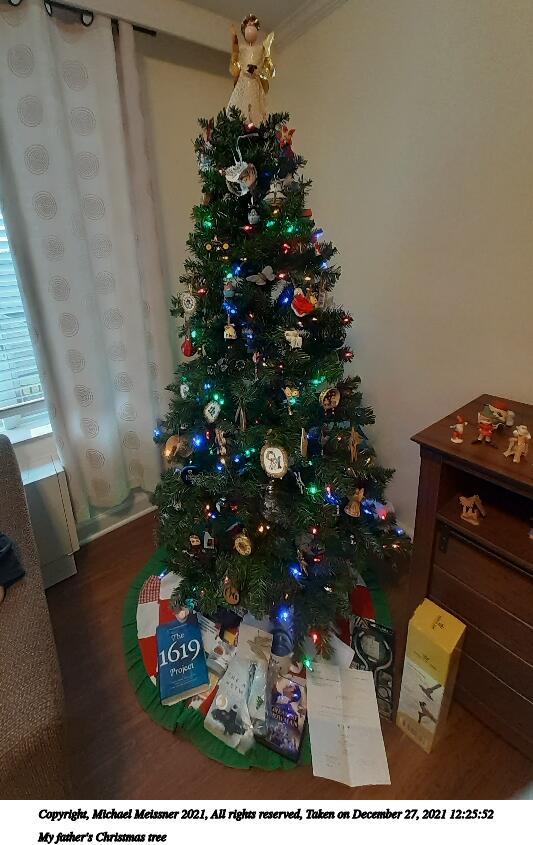 Picture #7: My father's Christmas tree 533x845, 77,378 bytes (76K), (html file) Copyright, Michael Meissner 2021, All rights reserved Samsung A20 phone f/2.2, ISO 200, 1/24 sec, 1.1mm, auto mode, spot metering 35mm equivalent focal length 13.0mm Programs used: raw therapee, rotate left Taken by Michael Meissner on December 27, 2021 12:25:52 Last modified on January 01, 2022 at 20:47 |
