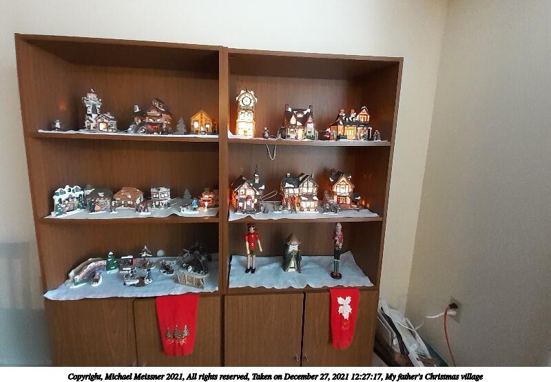 Picture #6: My father's Christmas village 800x396, 47,082 bytes (46K), (html file) Copyright, Michael Meissner 2021, All rights reserved Samsung A20 phone f/2.2, ISO 500, 1/20 sec, 1.1mm, auto mode, spot metering 35mm equivalent focal length 13.0mm Programs used: gimp, raw therapee Taken by Michael Meissner on December 27, 2021 12:26:01 Last modified on January 01, 2022 at 20:49 |