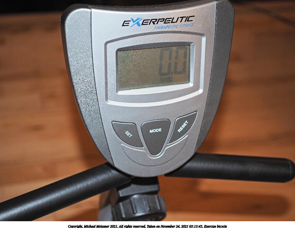 Picture #2: Exercise bicycle #2 1000x773, 117,700 bytes (115K), (html file) Copyright, Michael Meissner 2021, All rights reserved Olympus E-M1-II camera with Olympus-m43 12-40mm f/2.8 lens f/2.8, ISO 200, flash, 1/60 sec, 31.0mm, auto mode, natural color, SHQ, matrix metering, IS Auto, anti-shock 35mm equivalent focal length 62.0mm Programs used: crop, raw therapee Taken by Michael Meissner on November 24, 2021 03:13:45 Last modified on November 24, 2021 at 14:18 |