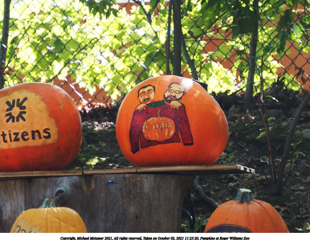 Picture #6: Pumpkins at Roger Williams Zoo #3 1000x773, 276,146 bytes (270K), (html file) Copyright, Michael Meissner 2021, All rights reserved Olympus E-M5-III camera with Olympus-m43 12-200mm f/3.5-6.3 lens f/7.1, ISO 200, 1/125 sec, 28.0mm, auto mode, vivid color, matrix metering, bias -0.3, IS Auto, both eyes priority, face detection 35mm equivalent focal length 56.0mm Programs used: crop, raw therapee Taken by Michael Meissner on October 02, 2021 11:28:24 Last modified on December 12, 2021 at 01:41 |