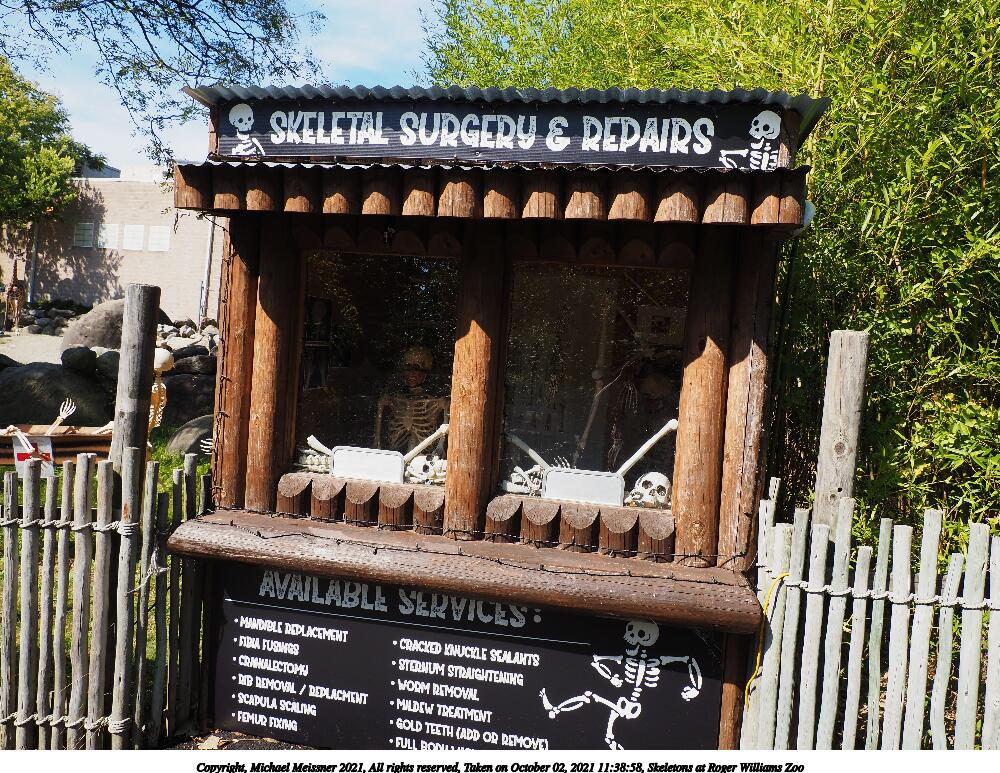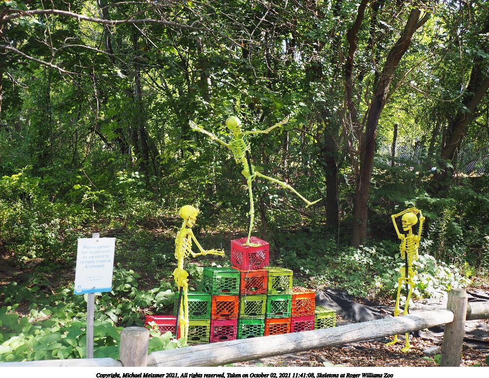 Picture #3: Skeletons at Roger Williams Zoo 800x623, 147,592 bytes (145K), (html file) Copyright, Michael Meissner 2021, All rights reserved Olympus E-M5-III camera with Olympus-m43 12-200mm f/3.5-6.3 lens f/5.0, ISO 320, 1/60 sec, 28.0mm, auto mode, vivid color, matrix metering, bias -0.3, IS Auto, both eyes priority, face detection 35mm equivalent focal length 56.0mm Programs used: crop, gimp, raw therapee Taken by Michael Meissner on October 02, 2021 11:24:25 Last modified on December 12, 2021 at 01:39 |