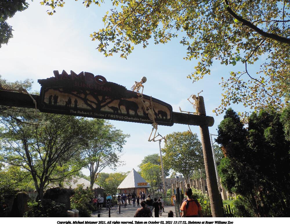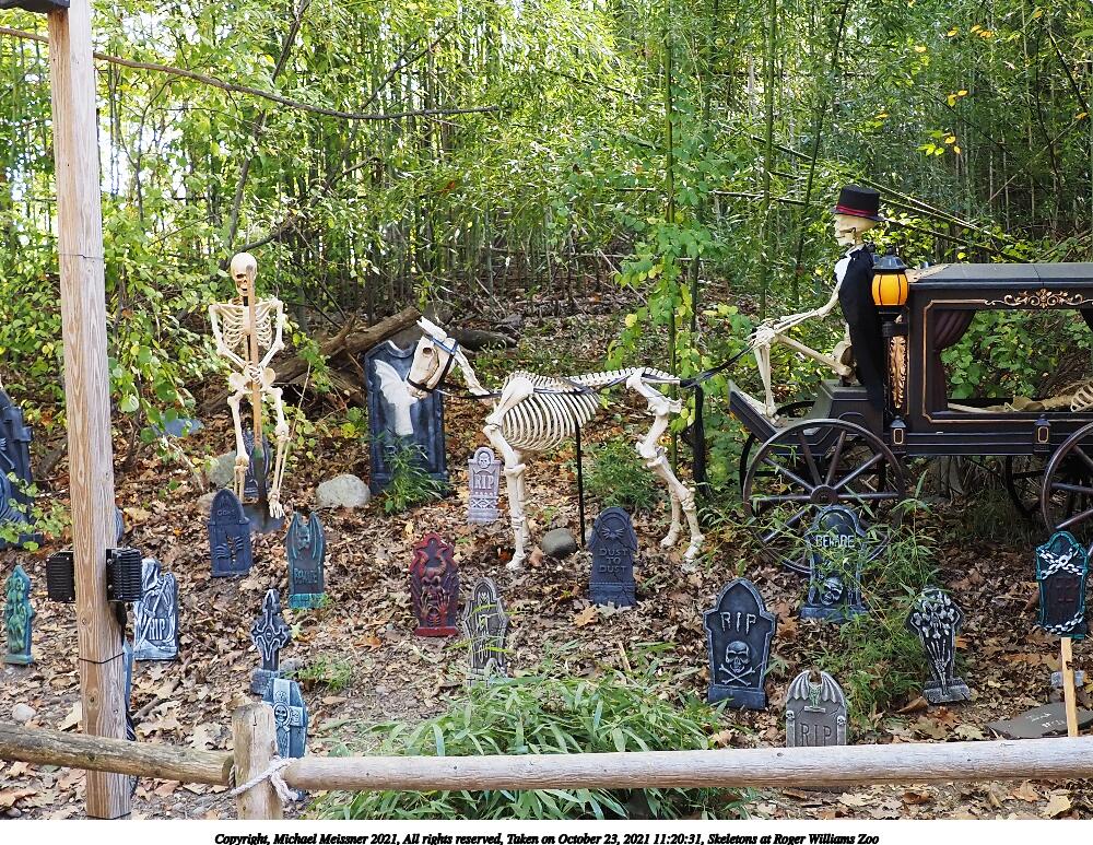 Picture #20: Skeletons at Roger Williams Zoo #11 1000x773, 256,012 bytes (251K), (html file) Copyright, Michael Meissner 2021, All rights reserved Olympus E-M5-III camera with Olympus-m43 12-200mm f/3.5-6.3 lens f/9.0, ISO 200, 1/400 sec, 12.0mm, auto mode, vivid color, matrix metering, bias -0.3, IS Auto, both eyes priority, face detection 35mm equivalent focal length 24.0mm Programs used: crop, gimp, raw therapee Taken by Michael Meissner on October 02, 2021 13:17:52 Last modified on December 12, 2021 at 01:46 |
