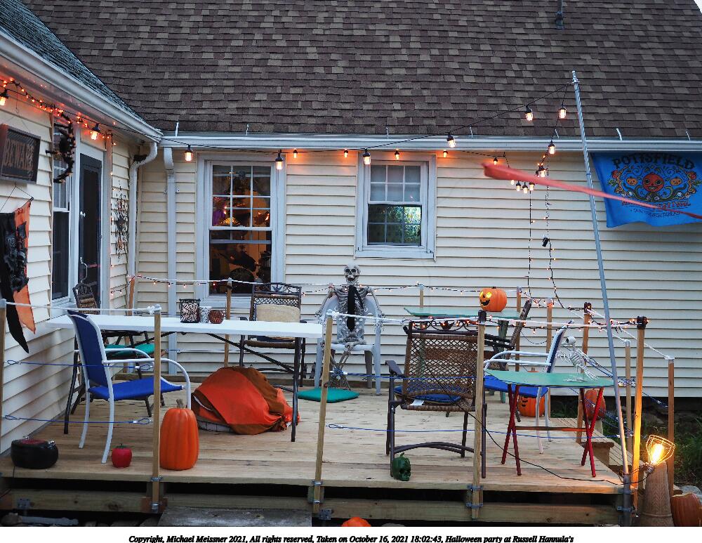 Picture #13: Halloween party at Russell Hannula's #13 1000x773, 180,920 bytes (177K), (html file) Copyright, Michael Meissner 2021, All rights reserved Olympus E-M1-II camera with Olympus-m43 12-40mm f/2.8 lens f/2.8, ISO 800, 1/80 sec, 34.0mm, auto mode, natural color, SHQ, matrix metering, IS Auto, both eyes priority, face detection, anti-shock 35mm equivalent focal length 68.0mm Programs used: crop, raw therapee Taken by Michael Meissner on October 16, 2021 18:05:00 Last modified on October 31, 2021 at 23:49 |