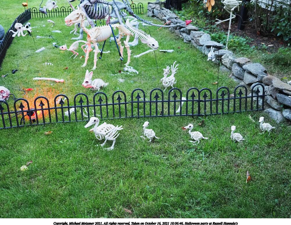 Picture #40: Bicycling skeleton towing child skeleton 1000x773, 170,989 bytes (167K), (html file) Copyright, Michael Meissner 2021, All rights reserved Samsung A20 phone f/1.9, ISO 40, 1/60 sec, 3.6mm, auto mode, spot metering 35mm equivalent focal length 27.0mm Programs used: crop, raw therapee Taken by Michael Meissner on October 17, 2021 16:08:07 Last modified on November 01, 2021 at 00:08 |
