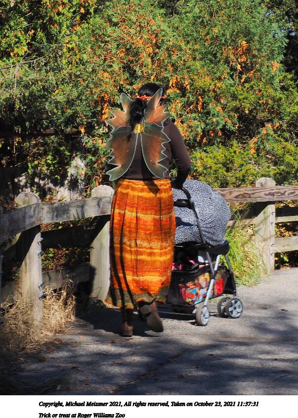Picture #29: Trick or treat at Roger Williams Zoo #3 603x846, 189,179 bytes (185K), (html file) Copyright, Michael Meissner 2021, All rights reserved Olympus E-M5-III camera with Olympus-m43 12-200mm f/3.5-6.3 lens f/10.0, ISO 200, 1/320 sec, 45.0mm, auto mode, vivid color, matrix metering, bias -1.0, IS Auto 35mm equivalent focal length 90.0mm Programs used: crop, gimp, raw therapee Taken by Michael Meissner on October 23, 2021 11:37:31 Last modified on December 12, 2021 at 01:50 |