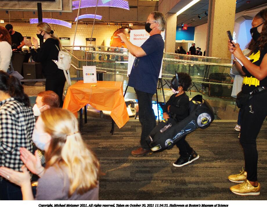 Picture #9: Halloween at Boston's Museum of Science #9 920x713, 203,498 bytes (199K), (html file) Copyright, Michael Meissner 2021, All rights reserved Olympus E-M5-I camera with Sigma 16mm f/1.4 lens f/1.4, ISO 320, flash (+0.33 flash compensation), 1/60 sec, 16.0mm, auto mode, vivid color, SHQ, matrix metering, IS1 (All Direction Shake IS), noise reduction auto, noise filter low 35mm equivalent focal length 32.0mm Programs used: crop, raw therapee Taken by Michael Meissner on October 30, 2021 11:08:34 Last modified on December 12, 2021 at 02:27 |
