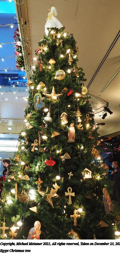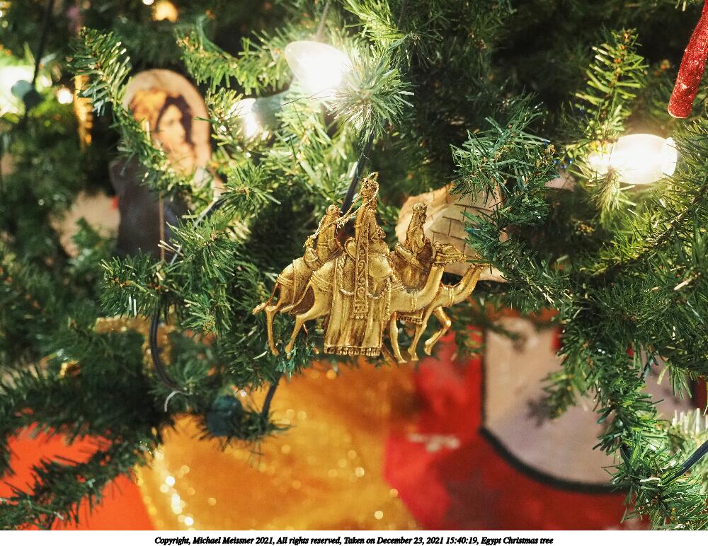 Picture #17: Egypt Christmas tree Thumb: 200x400, 49,321 bytes (49K) Small: 400x845, 114,779 bytes (113K), (html file) Copyright, Michael Meissner 2021, All rights reserved Olympus E-M5-III camera with Olympus-m43 12-40mm f/2.8 lens f/2.8, ISO 1600, 1/60 sec, 12.0mm, auto mode, vivid color, matrix metering, IS Auto, noise reduction auto 35mm equivalent focal length 24.0mm Programs used: crop, gimp, raw therapee, rotate left Taken by Michael Meissner on December 23, 2021 12:29:47 Last modified on January 18, 2022 at 00:55 |