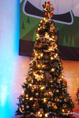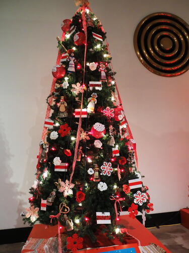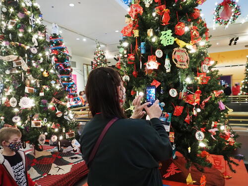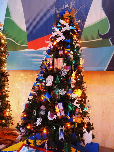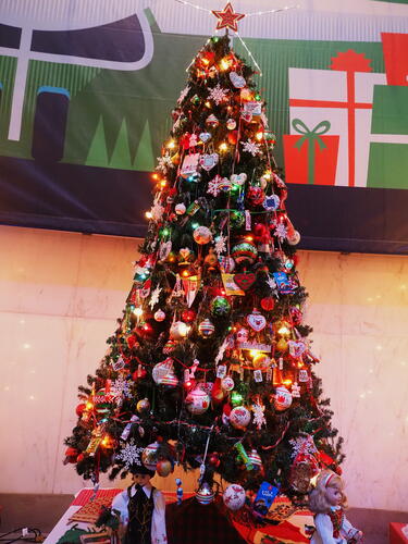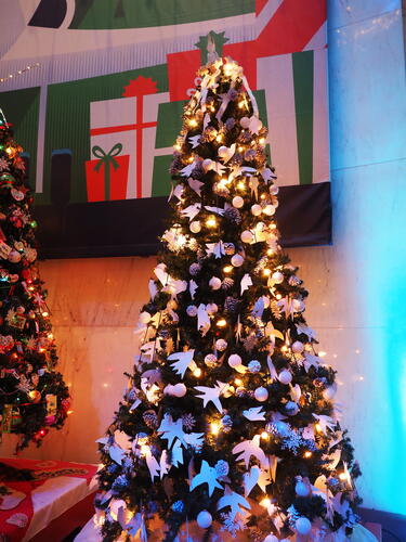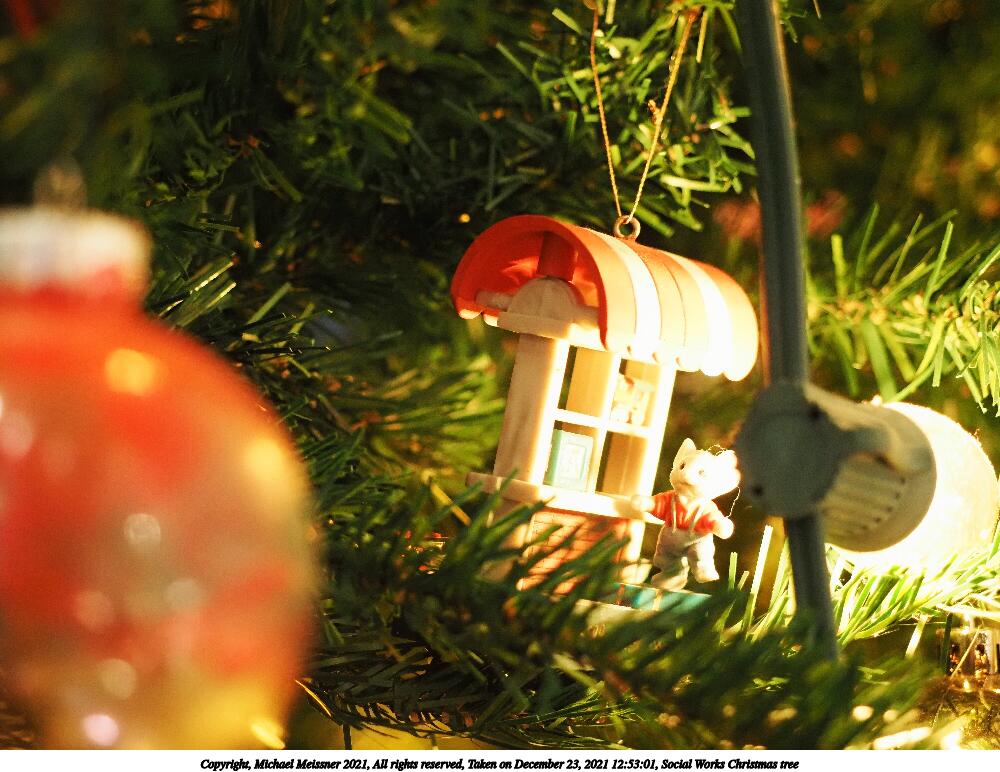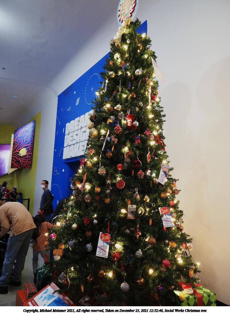 Picture #55: Social Works Christmas tree #2 Thumb: 500x375, 63,197 bytes (62K) Small: 1000x772, 143,888 bytes (141K), (html file) Copyright, Michael Meissner 2021, All rights reserved Olympus E-M5-III camera with Olympus-m43 12-40mm f/2.8 lens f/2.8, ISO 3200, 1/80 sec, 40.0mm, auto mode, vivid color, matrix metering, IS Auto, noise reduction auto 35mm equivalent focal length 80.0mm Programs used: crop, raw therapee Taken by Michael Meissner on December 23, 2021 12:53:01 Last modified on January 18, 2022 at 01:20 |