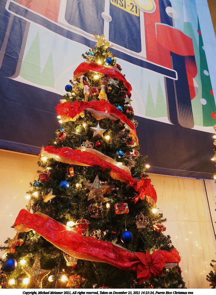 Picture #60: Puerto Rico Christmas tree Thumb: 375x500, 68,744 bytes (68K) Small: 750x1022, 196,267 bytes (192K), (html file) Copyright, Michael Meissner 2021, All rights reserved Olympus E-M5-III camera with Olympus-m43 12-40mm f/2.8 lens f/2.8, ISO 2500, 1/60 sec, 12.0mm, auto mode, vivid color, matrix metering, IS Auto, noise reduction auto 35mm equivalent focal length 24.0mm Programs used: crop, raw therapee, rotate left Taken by Michael Meissner on December 23, 2021 14:23:24 Last modified on January 20, 2022 at 19:16 |