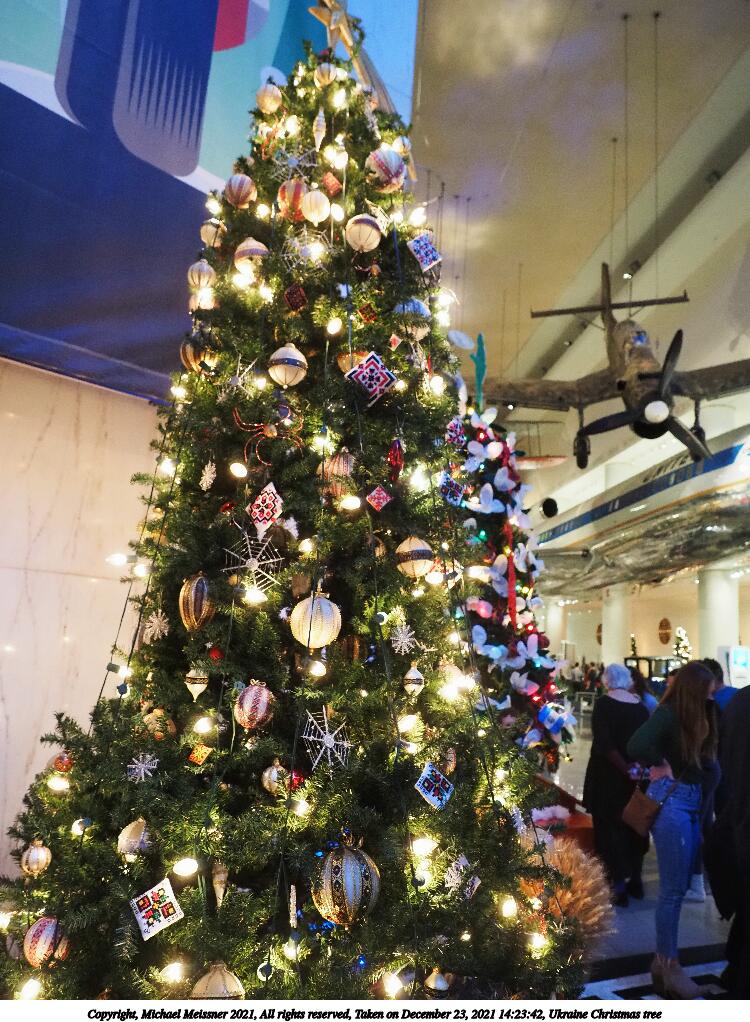 Picture #62: Ukraine Christmas tree #2 Thumb: 500x375, 89,780 bytes (88K) Small: 1000x772, 245,575 bytes (240K), (html file) Copyright, Michael Meissner 2021, All rights reserved Olympus E-M5-III camera with Olympus-m43 12-40mm f/2.8 lens f/2.8, ISO 4000, 1/60 sec, 12.0mm, auto mode, vivid color, matrix metering, IS Auto, noise reduction auto 35mm equivalent focal length 24.0mm Programs used: crop, raw therapee Taken by Michael Meissner on December 23, 2021 14:23:51 Last modified on January 20, 2022 at 19:20 |