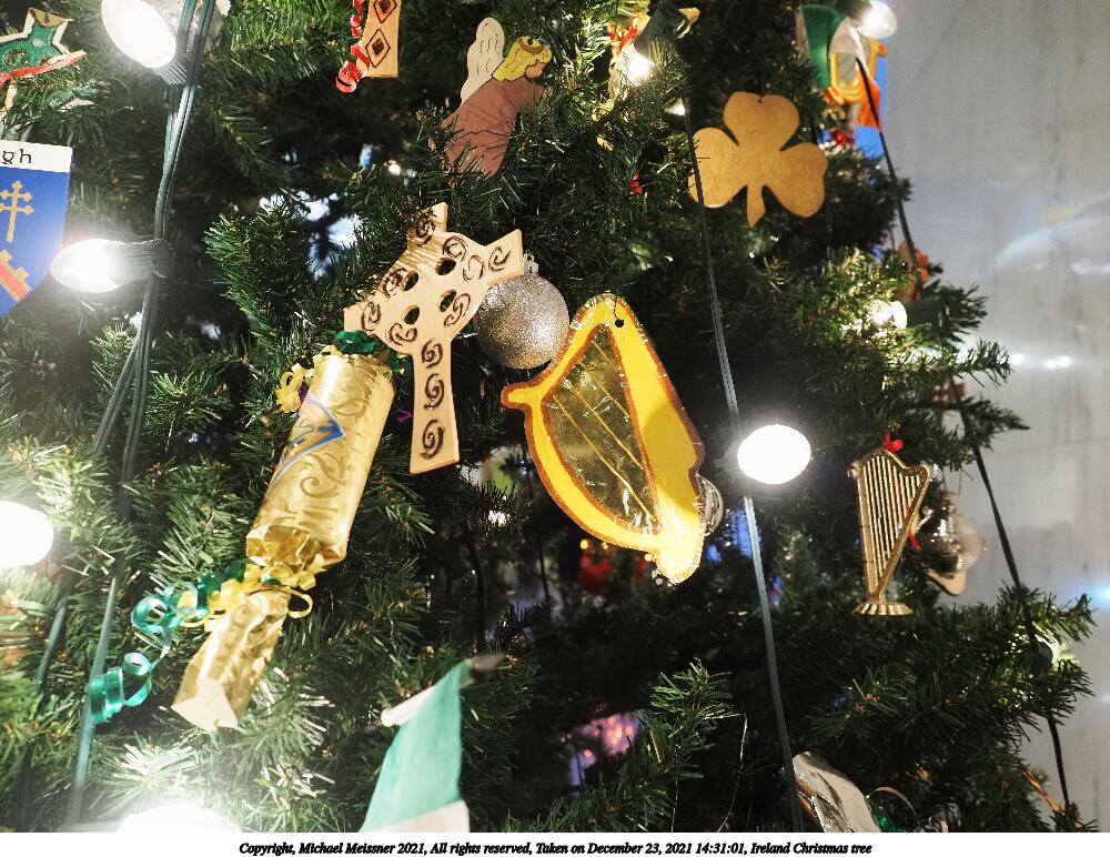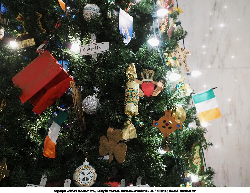 Picture #74: Ireland Christmas tree Thumb: 375x500, 63,113 bytes (62K) Small: 750x1022, 162,807 bytes (159K), (html file) Copyright, Michael Meissner 2021, All rights reserved Olympus E-M5-III camera with Olympus-m43 12-40mm f/2.8 lens f/2.8, ISO 1600, 1/60 sec, 12.0mm, auto mode, vivid color, matrix metering, bias -0.3, IS Auto, noise reduction auto 35mm equivalent focal length 24.0mm Programs used: crop, raw therapee, rotate left Taken by Michael Meissner on December 23, 2021 14:30:45 Last modified on January 20, 2022 at 19:28 |