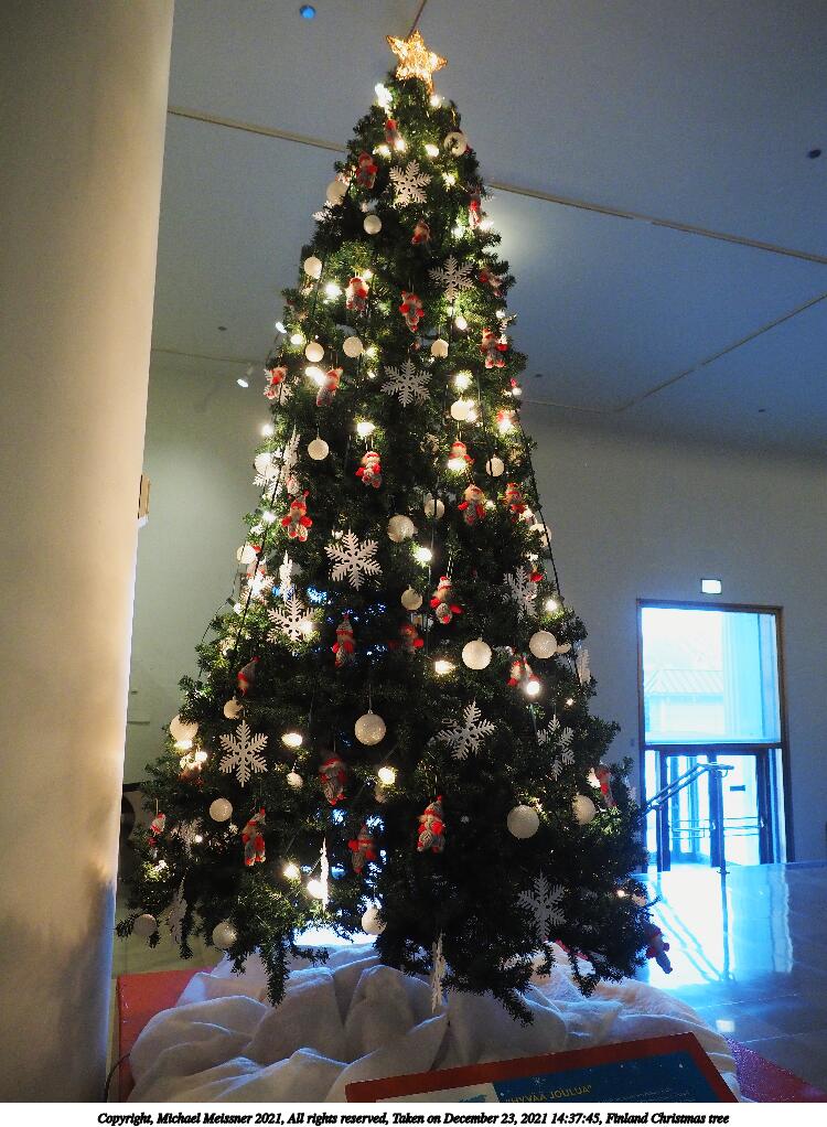 Picture #90: Finland Christmas tree Thumb: 375x500, 56,844 bytes (56K) Small: 750x1022, 160,142 bytes (157K), (html file) Copyright, Michael Meissner 2021, All rights reserved Olympus E-M5-III camera with Olympus-m43 12-40mm f/2.8 lens f/2.8, ISO 1250, 1/60 sec, 12.0mm, auto mode, vivid color, matrix metering, bias -0.3, IS Auto, noise reduction auto 35mm equivalent focal length 24.0mm Programs used: crop, raw therapee, rotate left Taken by Michael Meissner on December 23, 2021 14:37:45 Last modified on January 21, 2022 at 00:32 |
