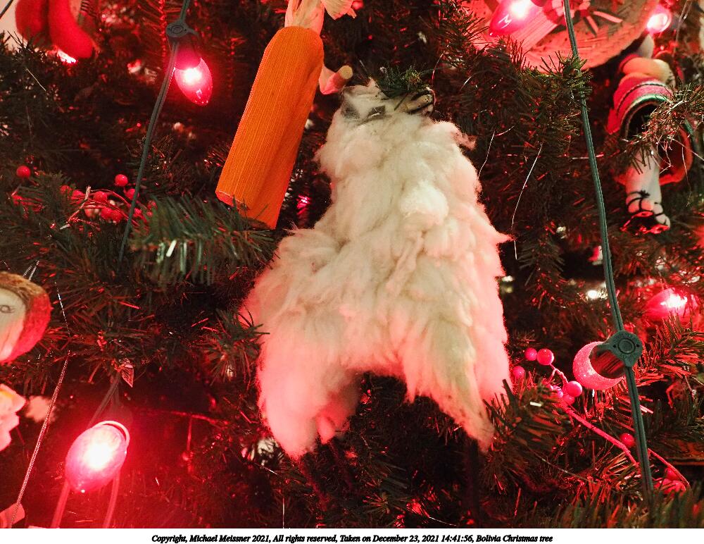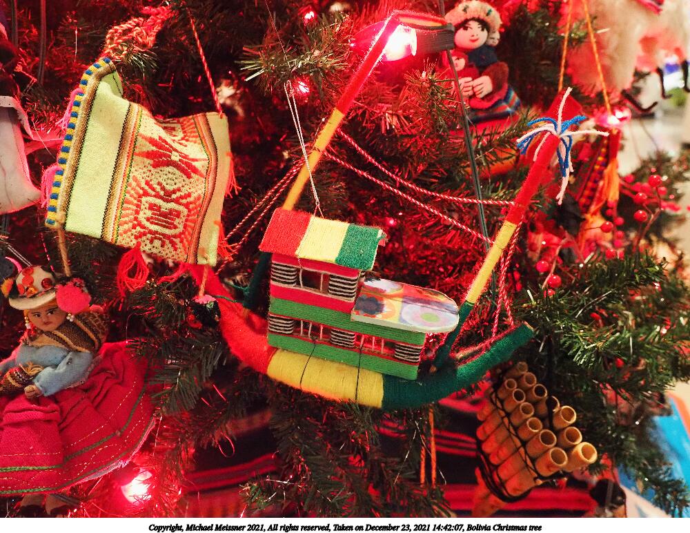 Picture #104: Bolivia Christmas tree #4 Thumb: 500x375, 83,992 bytes (83K) Small: 1000x772, 220,753 bytes (216K), (html file) Copyright, Michael Meissner 2021, All rights reserved Olympus E-M5-III camera with Olympus-m43 12-40mm f/2.8 lens f/2.8, ISO 5000, 1/60 sec, 12.0mm, auto mode, vivid color, matrix metering, bias -0.3, IS Auto, noise reduction auto 35mm equivalent focal length 24.0mm Programs used: crop, raw therapee Taken by Michael Meissner on December 23, 2021 14:42:07 Last modified on January 21, 2022 at 00:39 |