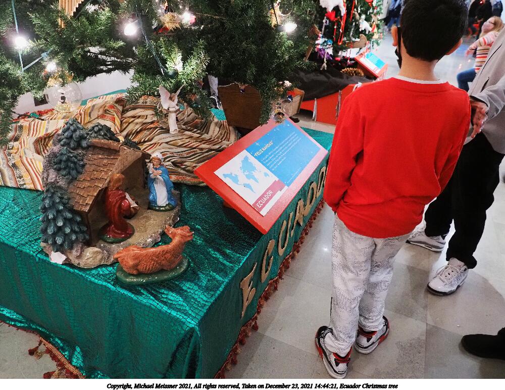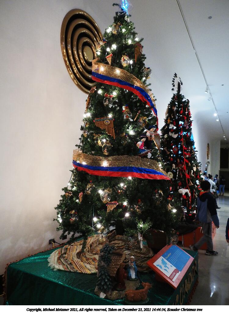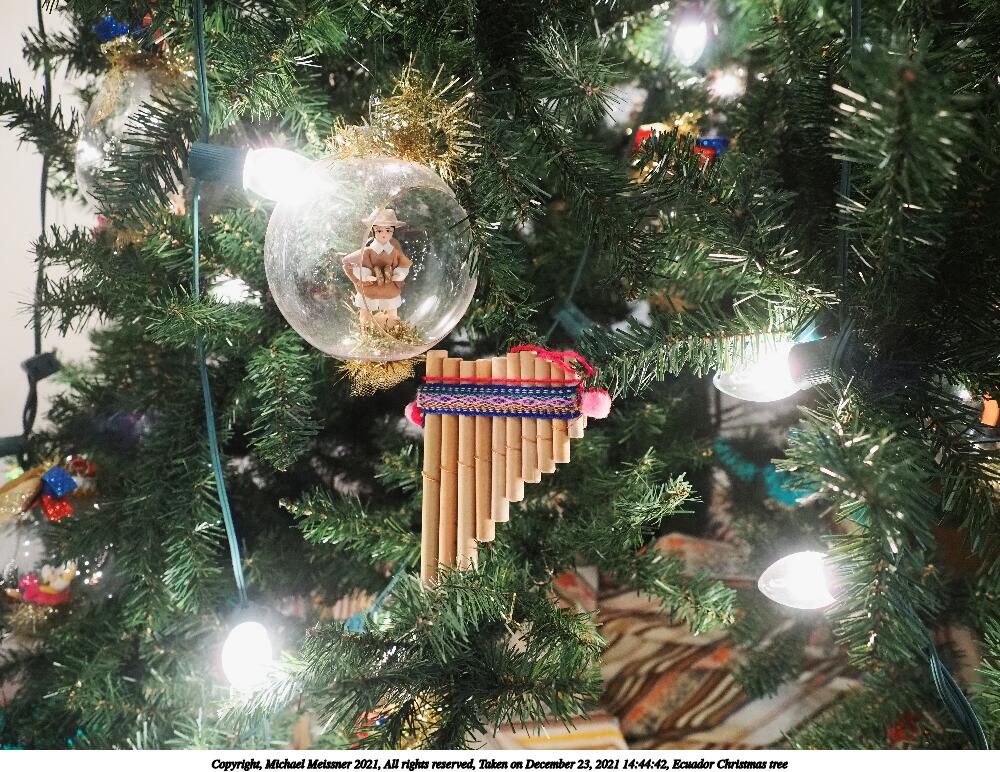 Picture #112: Ecuador Christmas tree Thumb: 500x375, 70,872 bytes (70K) Small: 1000x772, 212,638 bytes (208K), (html file) Copyright, Michael Meissner 2021, All rights reserved Olympus E-M5-III camera with Olympus-m43 12-40mm f/2.8 lens f/2.8, ISO 3200, 1/60 sec, 12.0mm, auto mode, vivid color, matrix metering, bias -0.3, IS Auto, noise reduction auto 35mm equivalent focal length 24.0mm Programs used: crop, raw therapee Taken by Michael Meissner on December 23, 2021 14:44:21 Last modified on January 21, 2022 at 00:45 |